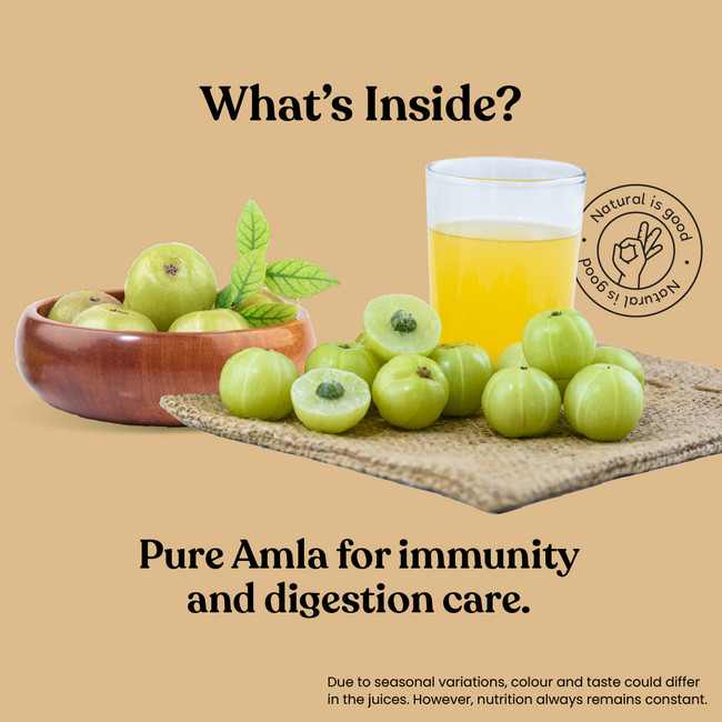 A natural immunity-boosting herbal juice made from high-quality amlas, sourced for their high concentration of Vitamin C. This juice supports easy digestion, improves skin and hair health, and protects against common viral infections such as cold and cough. The amlas are cold-pressed to retain the maximum benefits of the fruit.