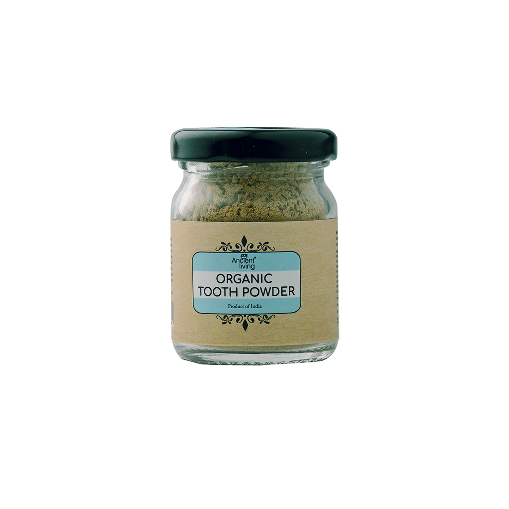 Ancient Living Organic tooth powder which is derived from the heart of Ayurveda is a boon to your oral health care. The carefully selected ingredients deliver a fresh breath and improve your gum health with every use. This organic tooth powder can replace your toothpaste as it consists of potent ingredients. It has natural teeth whitening products such as clove, long pepper, babool bark, and cinnamon which are historically known to freshen the breath. While these ingredients are busy ensuring your gum health, rock salt adds a nice sparkle to your teeth.This herbal tooth and gum powder act as a natural toothpaste for sensitive teeth. It is an invaluable tooth powder as it gets rids of bad breath and takes care of your overall oral health. It can be used by all the members of your family." Benifits: Ingredients: Tooth Powder: Long Pepper (Piper Longum), Clove Powder & Clove Oil (Syzgium Aromatium), Manjistha (Rubia Cordifolia), Ajwain (Trachispermum Ammi), Clary Sage Oil (Salvia Sclarea), Babool Bark Powder (Acacia Nilotica), Pacha Karpooram (Cinnamomum Camphora), Cinnamon Powder (Cinnamomum Verum), Triphala Amalaki (Emblica Officinalis), Bibhitaki (Terminalia Balerica), Haritaki (Terminalia Chebula), Tomar (Zanthoxylum Armatum), Rock Salt & Cinnamon Powder (Cinnamomum Verum) How to use: "Wet your mouth, take the desired quantity, and gently massage your teeth with the powder. A slight tingling sensation will be noticed due to the presence of clove and pepper essential oils. Rinse with water. Repeat if necessary. This powder is non-foaming. Use twice a day or as necessary for optimum results. With regular use, long-standing problems of bad breath have been reported to disappear within three days. It is made with freshly ground ingredients from our farms and is free of any fillers, foaming agents, or preservatives."