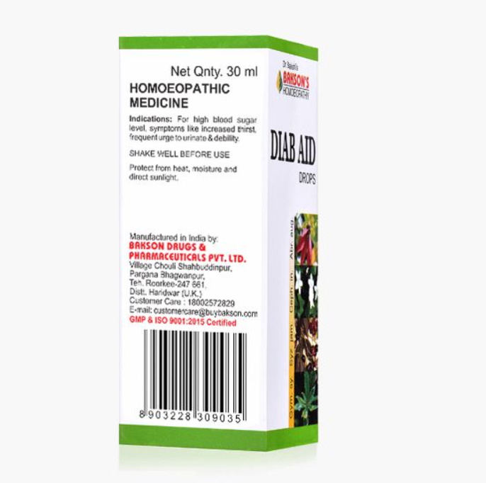 Bakson’s Diab Aid Drops is a homeopathic medicine for relief from increased frequency of urine, thirst and/or debility. It is safe to be used during pregnancy (in case of gestational diabetes). Homeopathic medicine for diabetes/blood sugar, also suitable for use as a standalone or an adjunct to other treatments. Regularly using Bakson’s Diab Aid Drops reduces fasting and post-prandial blood sugar levels, decreases insulin units and HbA1c levels.