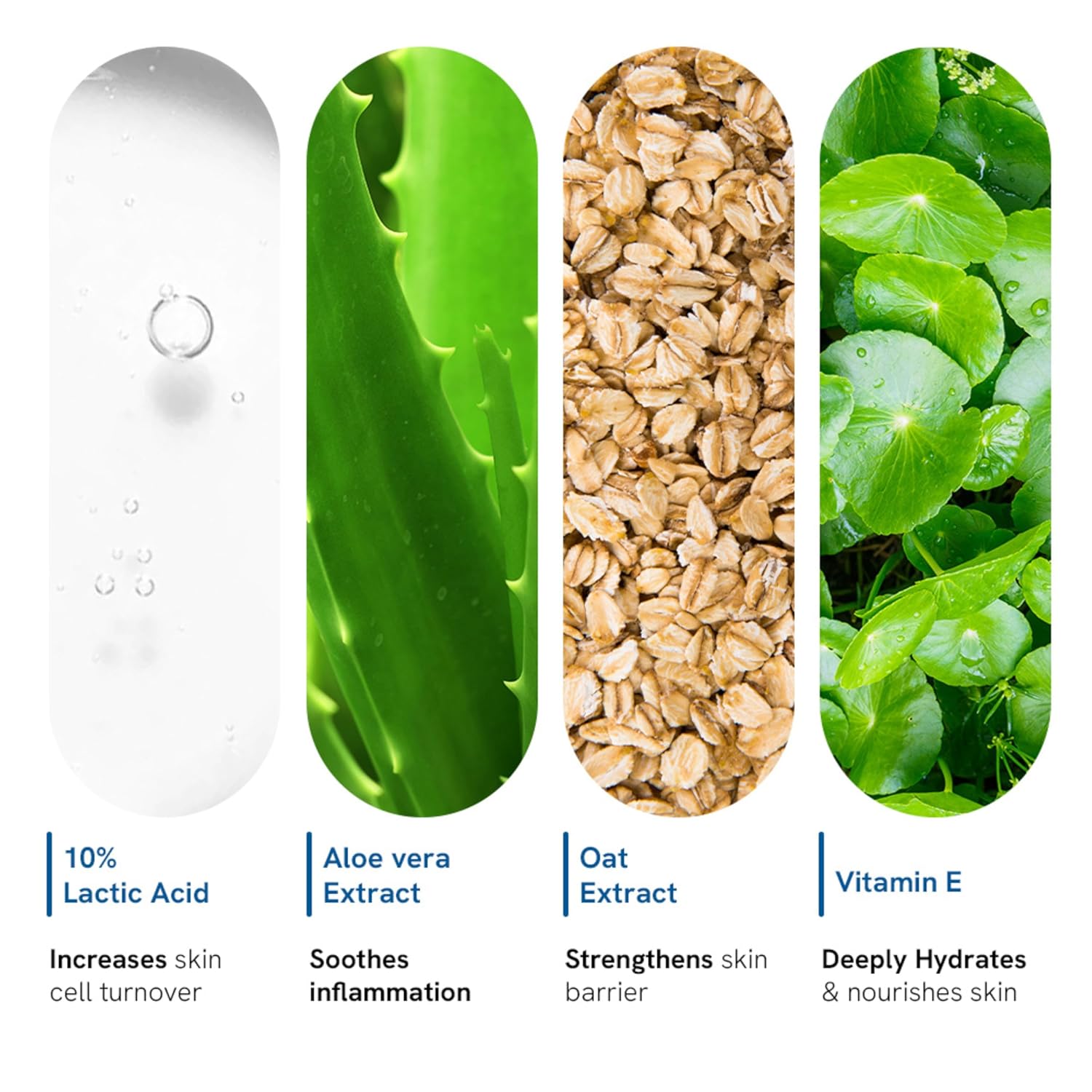 Aqua, Lactic Acid, Helianthus Annuus (Sunflower) Seed Oil, Sodium Hydroxide, Glycerin, Cetostearyl alcohol, Stearic Acid, Emulsifying wax, Glyceryl Stearate, Natural Silica beads, Cetyl Alcohol, Phenoxyethanol (and) Ethylhexylglycerin, Aloe Barbadensis (Aloe Vera) Leaf Extract, Avena Sativa (Oat) Kernel Extract, Centella Asiatica (Gotu Kola) Extract, Perfume, Xanthan Gum, Microspheres (Jojoba Infused), Acrylates/C10-30 Alkyl Acrylate Crosspolymer, Allantoin, Disodium EDTA, Tocopheryl Acetate.