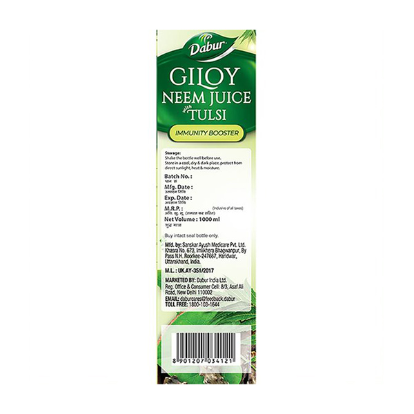 Giloy Neem Tulsi Juice combines the goodness of three important herbs that are attributed with many beneficial effects on immunity and skin health among others . As per Ayurveda, Giloy possesses Rasayana properties. Giloy is an adaptogen that helps reduce stress and fatigue, which are regarded as main root cause of all lifestyle disorders. Neem is renowned for its antimicrobial properties and is good for skin health. Neem has been used traditionally in managing many skin problems like acne. It also helps in improving liver functions that helps in detoxification. Tulsi is a scared herb and has beneficial effects in many health systems. It is good for respiratory health and is a household remedy for cough and cold . Tulsi also helps boost immunity. It also has Antioxidant properties. All the three helps have protective effects on liver and support healthy liver functions. Their Antioxidant properties make them a healthy choice to boost one’s health .