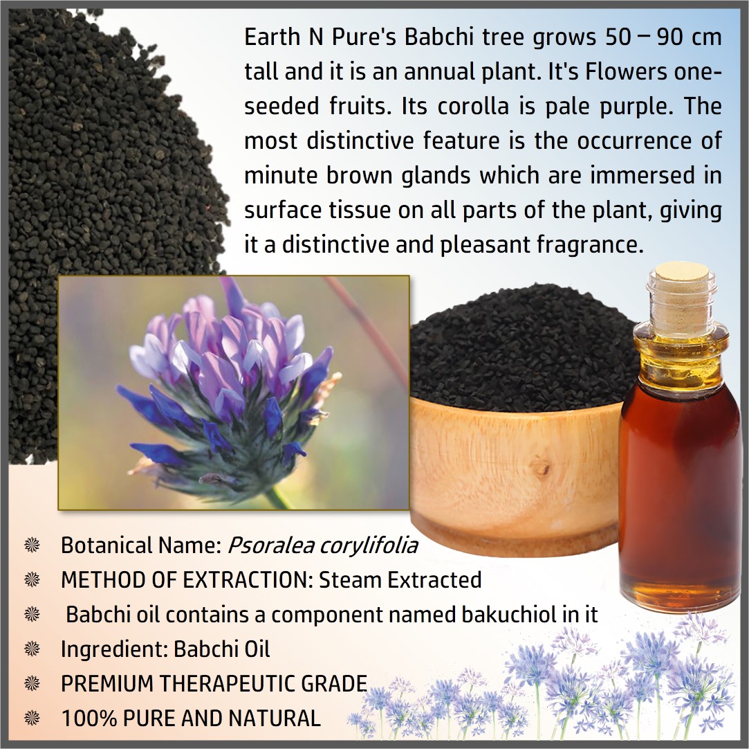 - BODYCARE WITH BABCHI OIL – Made with pure and undiluted Psoralea corylifolia, DIY is just the next step. Make your own beauty and well-being products with Babchi Oil and other high quality ingredients from Earth N Pure. Discover recipes to create handmade soap, moisturizer, Babchi Oil face wash, and other loveliness products.
