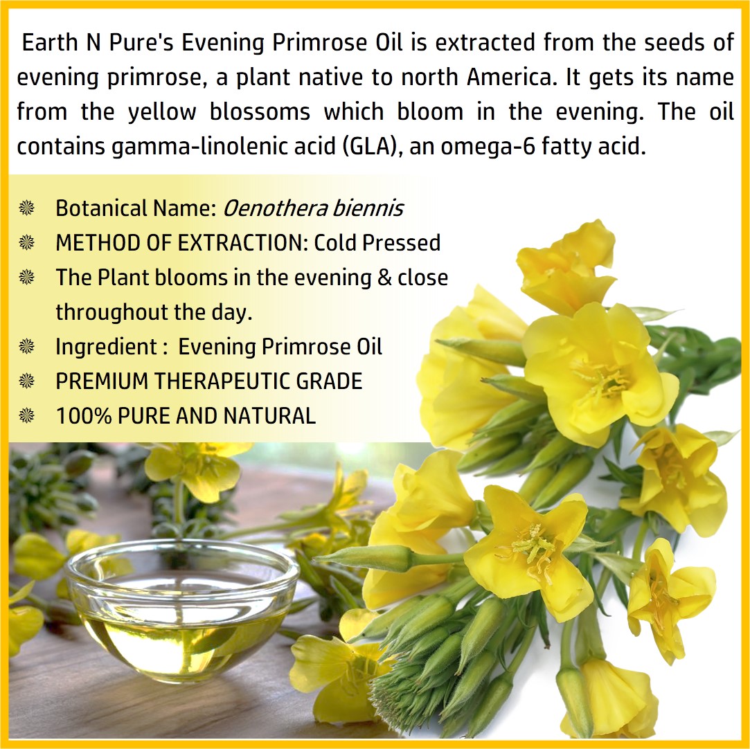 - CLEANER AND HIGH-QUALITY AFFORDABLE OILS: At Earth N Pure our goal is to positively impact the lives of as many people as we possibly can, by selling such a high quality product at an affordable price. Be sure while purchasing Earth N Pure Evening Primrose Oil as it is physically refined thus made more stable for extended shelf life.