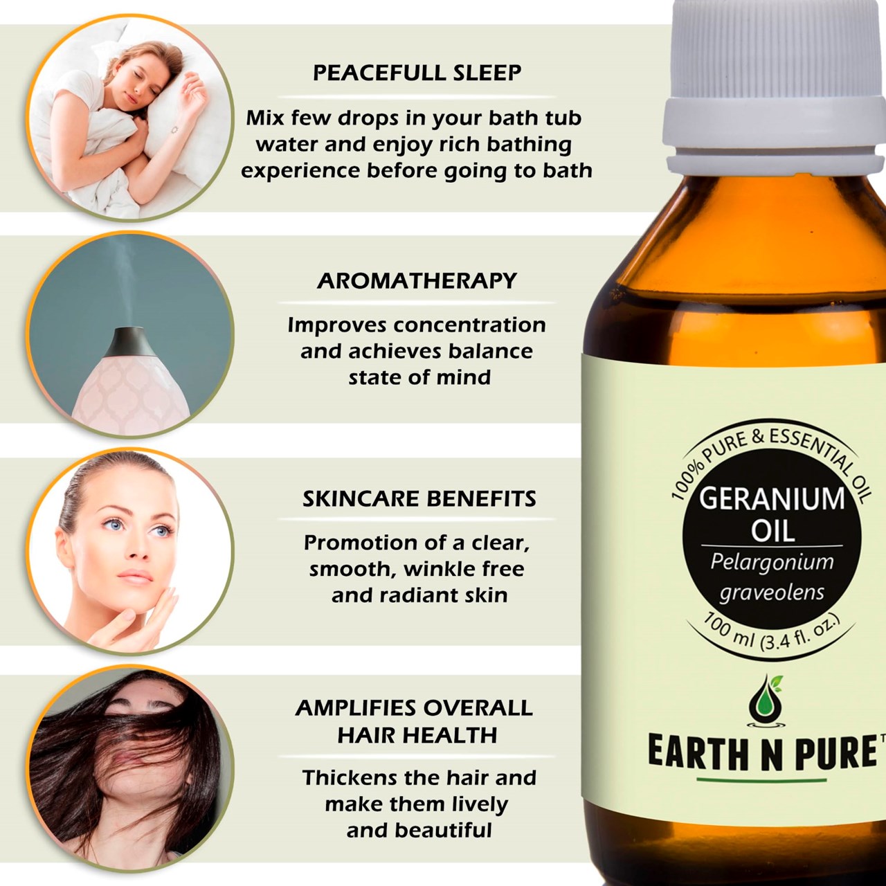 - CLEANER AND HIGH-QUALITY AFFORDABLE OILS: At Earth N Pure our goal is to positively impact the lives of as many people as we possibly can, by selling such a high quality product at an affordable price. Be sure while purchasing Earth N Pure Geranium Oil as it is physically refined thus made more stable for extended shelf life.