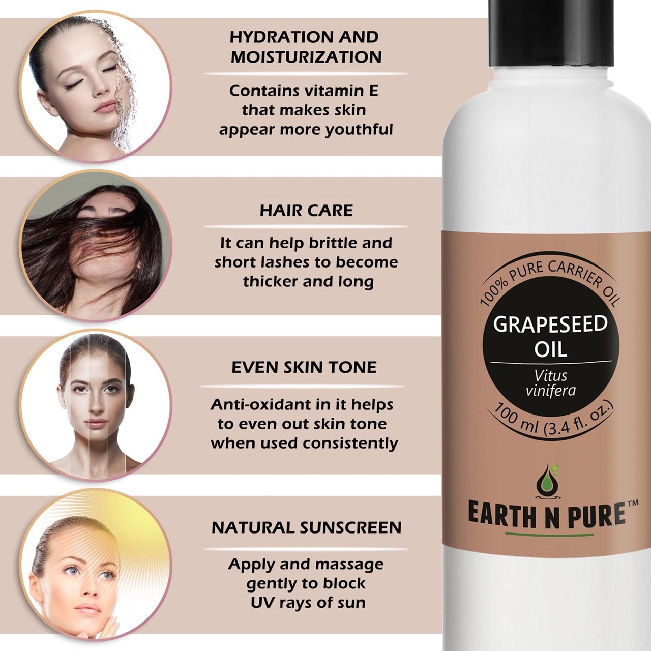 - CLEANER AND HIGH-QUALITY AFFORDABLE OILS: At Earth N Pure our goal is to positively impact the lives of as many people as we possibly can, by selling such a high quality product at an affordable price. Be sure while purchasing Earth N Pure Grapeseed Oil as it is physically refined thus made more stable for extended shelf life.