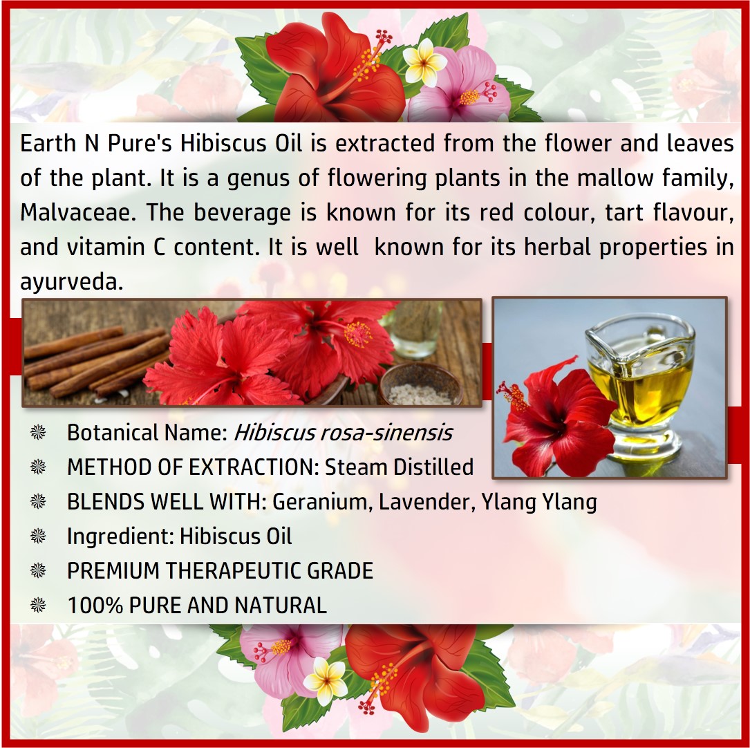 - CLEANER AND HIGH-QUALITY AFFORDABLE OILS: At Earth N Pure our goal is to positively impact the lives of as many people as we possibly can, by selling such a high quality product at an affordable price. Be sure while purchasing Earth N Pure Hibiscus Oil as it is physically refined thus made more stable for extended shelf life.