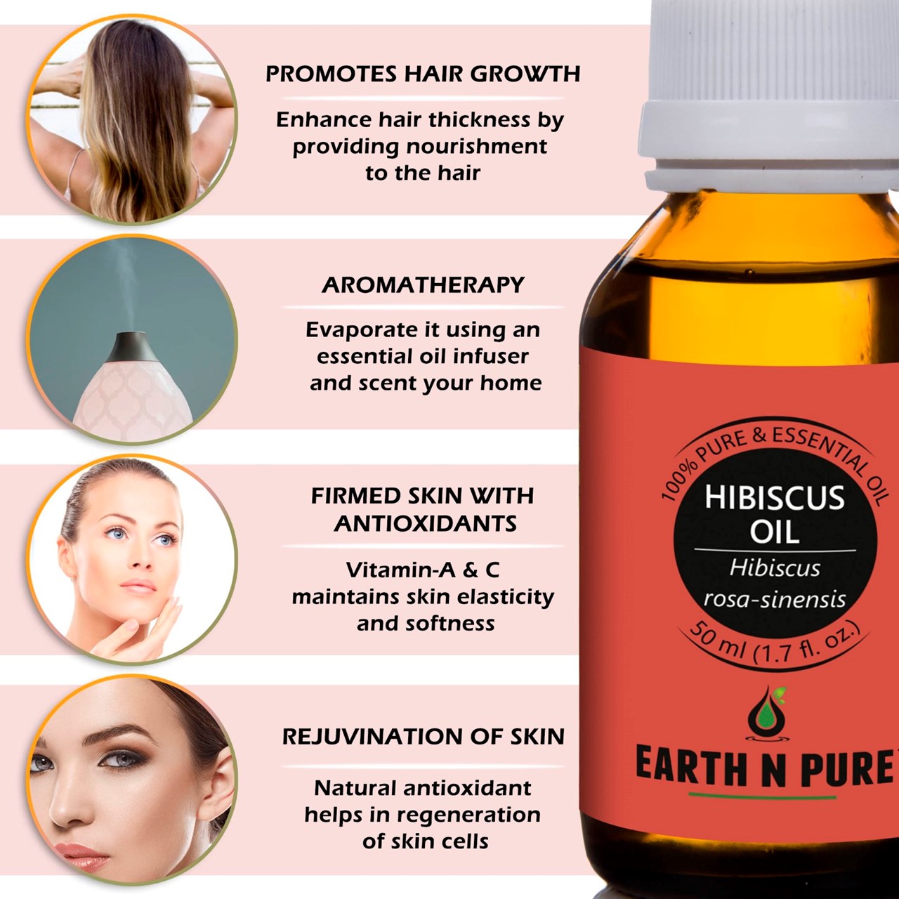 - CLEANER AND HIGH-QUALITY AFFORDABLE OILS: At Earth N Pure our goal is to positively impact the lives of as many people as we possibly can, by selling such a high quality product at an affordable price. Be sure while purchasing Earth N Pure Hibiscus Oil as it is physically refined thus made more stable for extended shelf life.