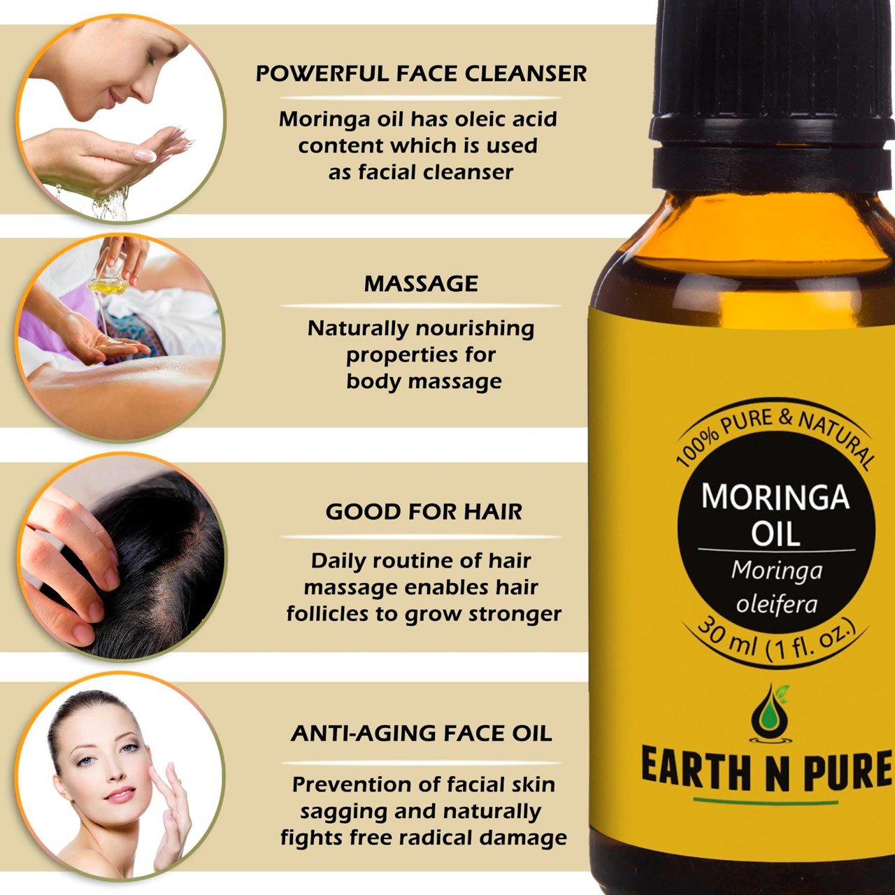 - CLEANER AND HIGH-QUALITY AFFORDABLE OILS: At Earth N Pure our goal is to positively impact the lives of as many people as we possibly can, by selling such a high quality product at an affordable price. Be sure while purchasing Earth N Pure Moringa Oil as it is physically refined thus made more stable for extended shelf life.