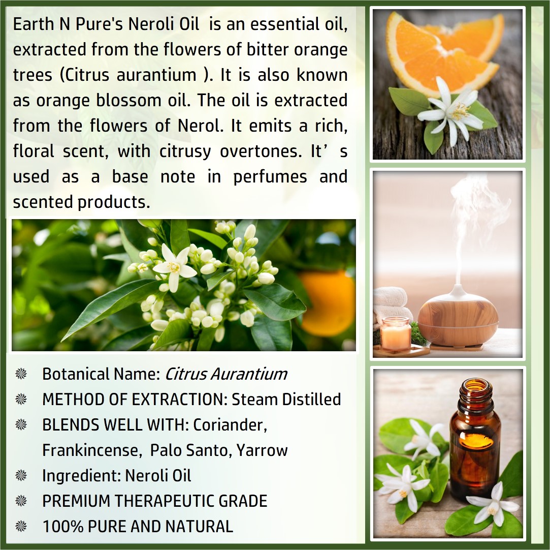 - CLEANER AND HIGH-QUALITY AFFORDABLE OILS: At Earth N Pure our goal is to positively impact the lives of as many people as we possibly can, by selling such a high quality product at an affordable price. Be sure while purchasing Earth N Pure Neroli Oil as it is physically refined thus made more stable for extended shelf life.
