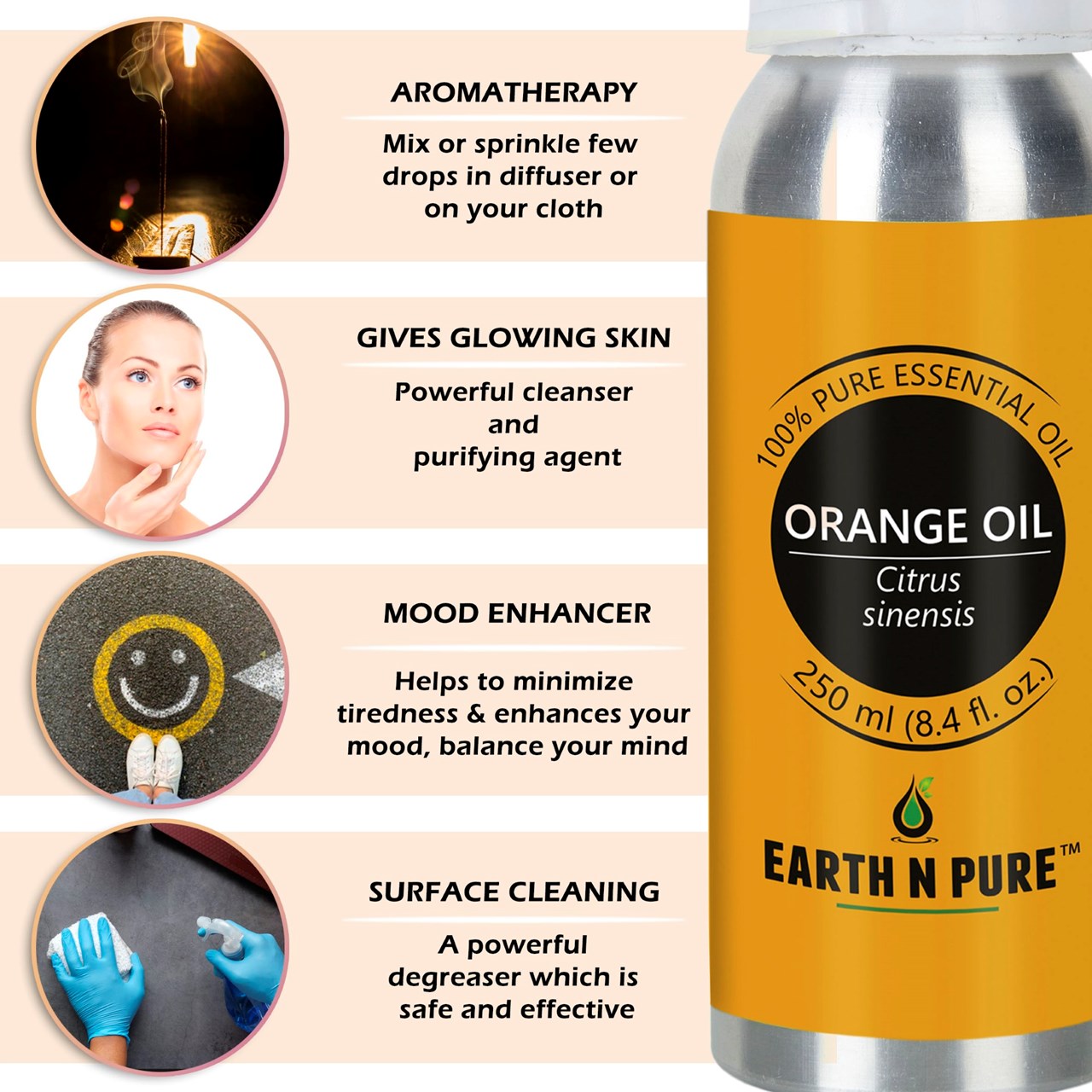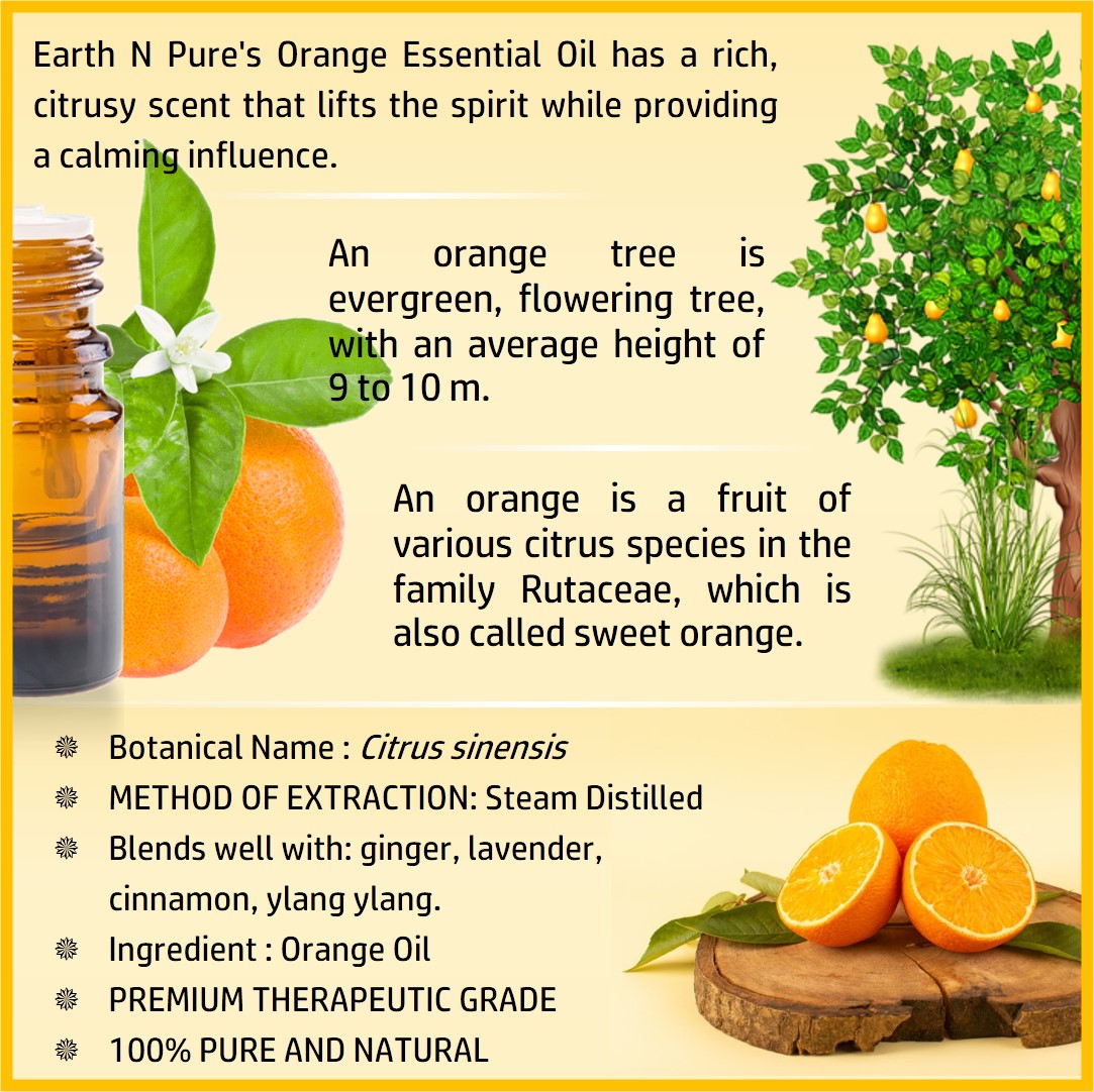 - CLEANER AND HIGH-QUALITY AFFORDABLE OILS: At Earth N Pure our goal is to positively impact the lives of as many people as we possibly can, by selling such a high quality product at an affordable price. Be sure while purchasing Earth N Pure Orange Oil as it is physically refined thus made more stable for extended shelf life.