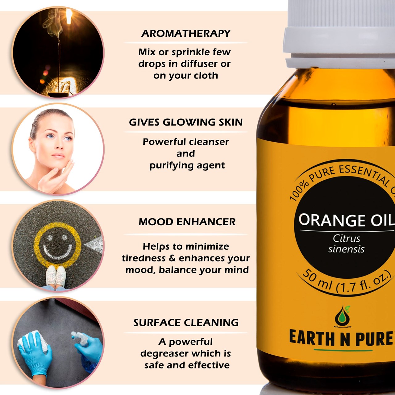 - CLEANER AND HIGH-QUALITY AFFORDABLE OILS: At Earth N Pure our goal is to positively impact the lives of as many people as we possibly can, by selling such a high quality product at an affordable price. Be sure while purchasing Earth N Pure Orange Oil as it is physically refined thus made more stable for extended shelf life.