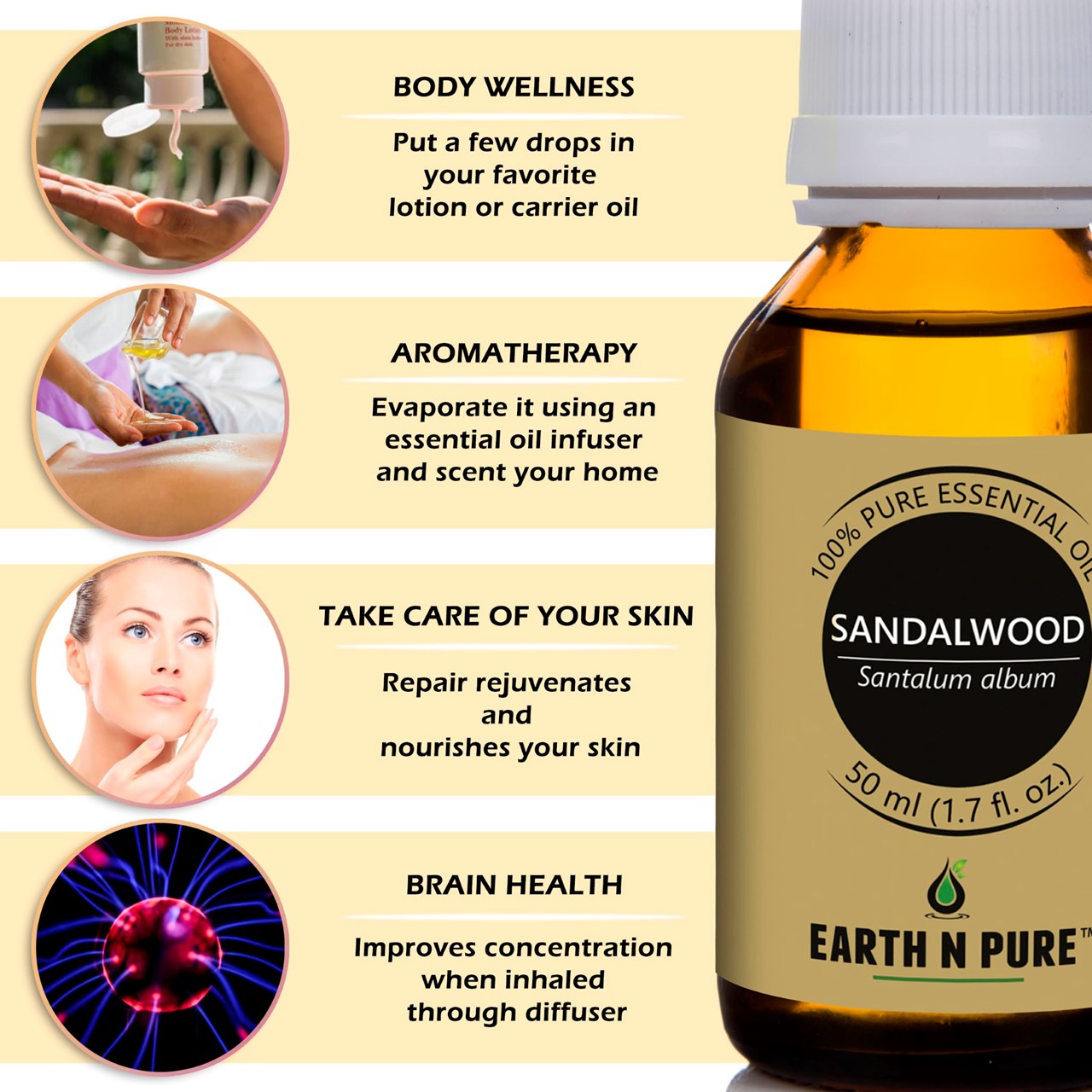 - BODYCARE WITH SANDALWOOD OIL – Made with pure and undiluted Santalum album, DIY is just the next step. Make your own beauty and well-being products with Sandalwood Oil and other high quality ingredients from Earth N Pure. Discover recipes to create handmade soap, moisturizer, Sandalwood Oil face wash, and other loveliness products.