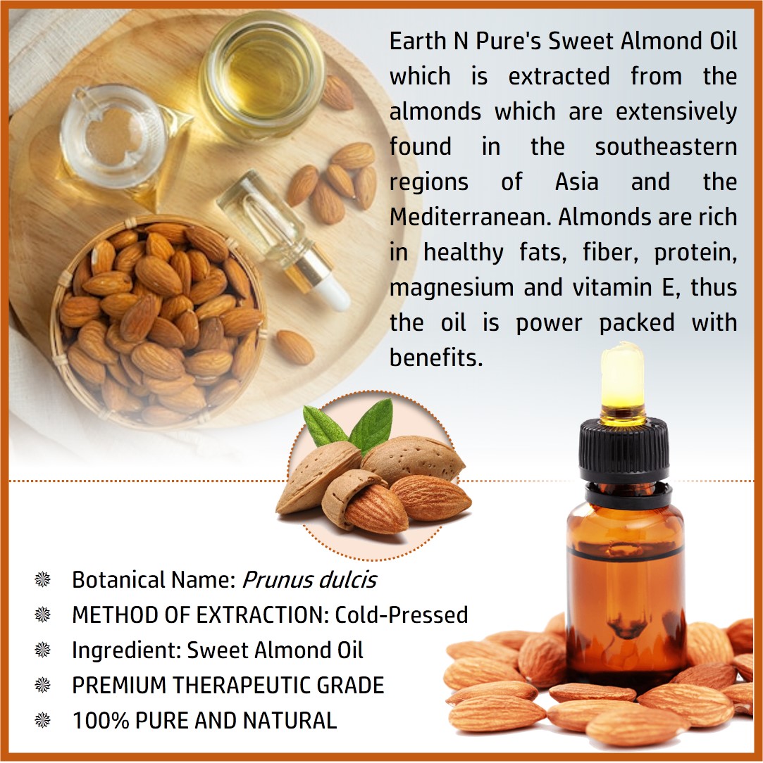 - BODYCARE WITH SWEET ALMOND OIL – Made with pure and undiluted Prunus dulcis, DIY is just the next step. Make your own beauty and well-being products with Sweet Almond Oil and other high quality ingredients from Earth N Pure. Discover recipes to create handmade soap, moisturizer, Sweet Almond Oil face wash, and other loveliness products.