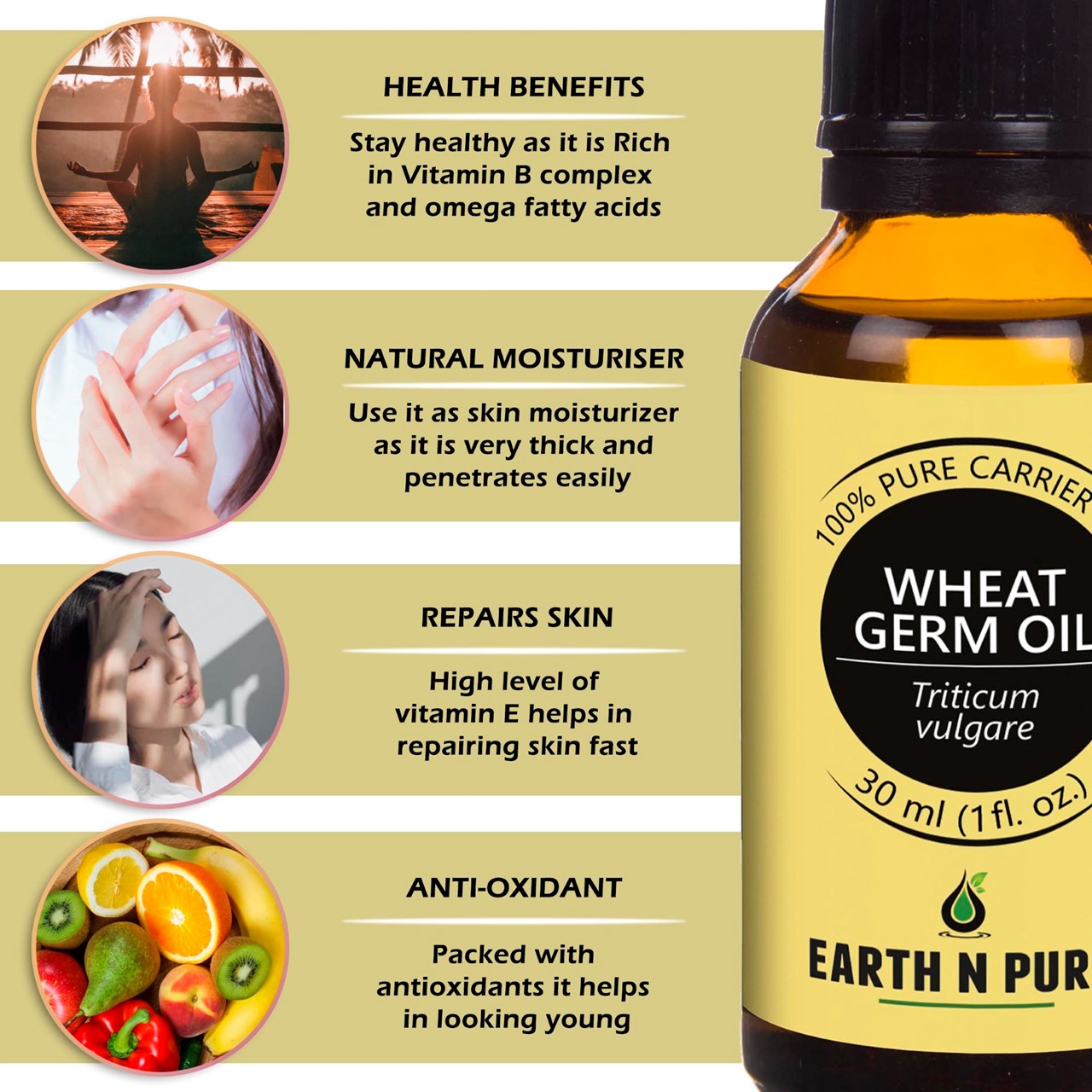 - CLEANER AND HIGH-QUALITY AFFORDABLE OILS: At Earth N Pure our goal is to positively impact the lives of as many people as we possibly can, by selling such a high quality product at an affordable price. Be sure while purchasing Earth N Pure Wheat germ Oil as it is physically refined thus made more stable for extended shelf life.