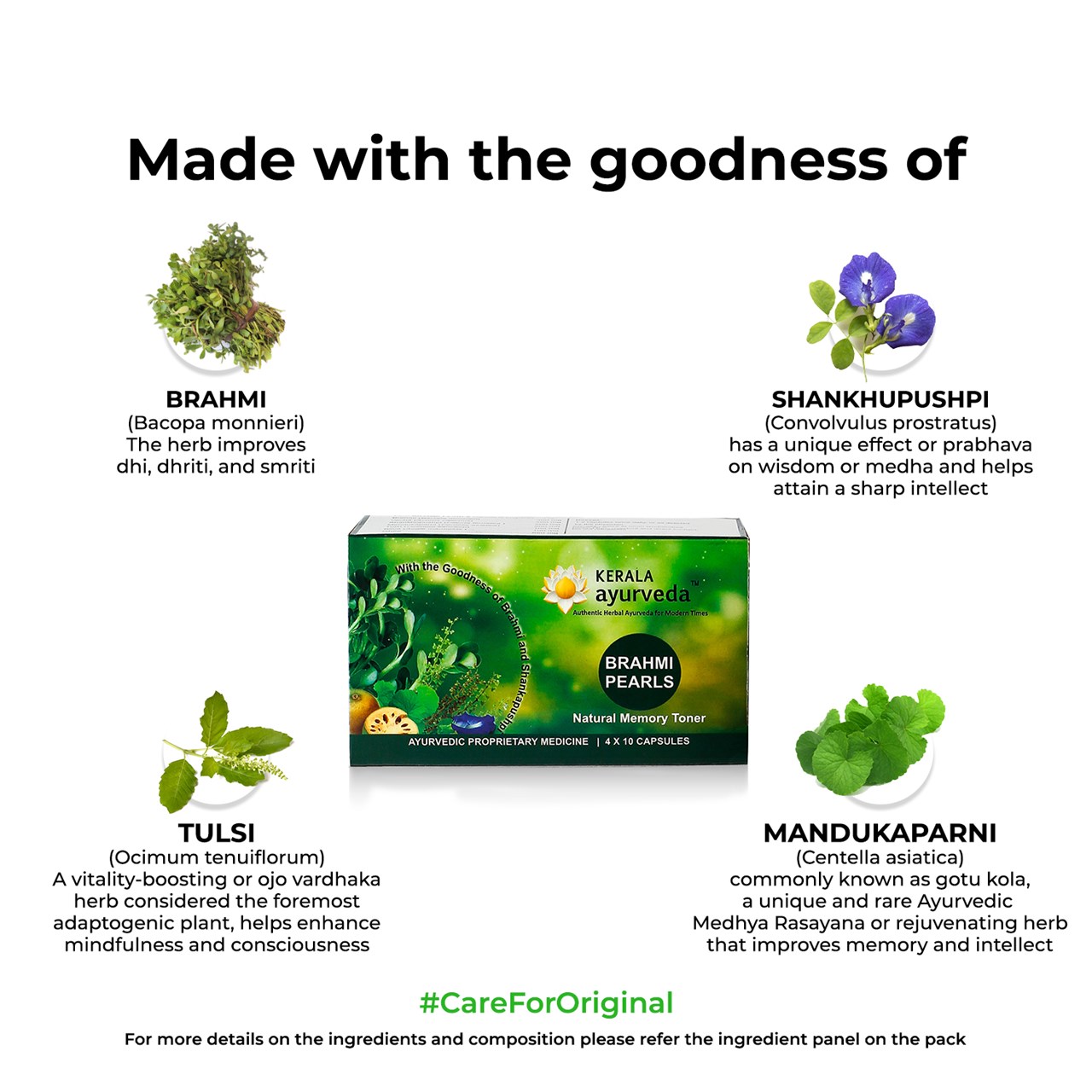 Whether you are a student or a working professional, you need a sharp intellect to perform optimally at work and in studies. The ability to think smart, see through the clutter, categorize your thoughts as well as to memorize always helps at work, studies and in day-to-day life. Kerala Ayurveda’s Brahmi Pearls are rich with memory enhancers and natural cognitive enhancer herbs such as Brahmi, Mandukaparni & Shankhpushpi. These herbs have popularly been used for centuries as supplements to improve memory and cognitive abilities. Our Brahmi Pearls are small capsules that you can carry with yourself and take on-the-go.