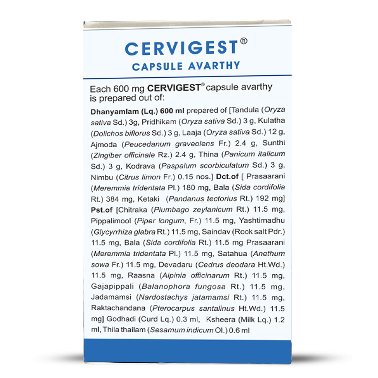 Kerala Ayurveda Cervigest Capsule is an Ayurvedic formulation designed to provide relief from musculoskeletal and neurological disorders related to the head, neck, shoulders, and arms. Combining the goodness of Kubja Prasarini Thailam and Kethakimuladi Thailam, along with Bala, Rasna and Kulatha, this capsule supports the strength of paravertebral muscles in the neck and alleviates muscular spasms. It also helps in managing inflammatory degenerative changes in intervertebral discs, offering effective support for cervical spine health and overall physical strength.