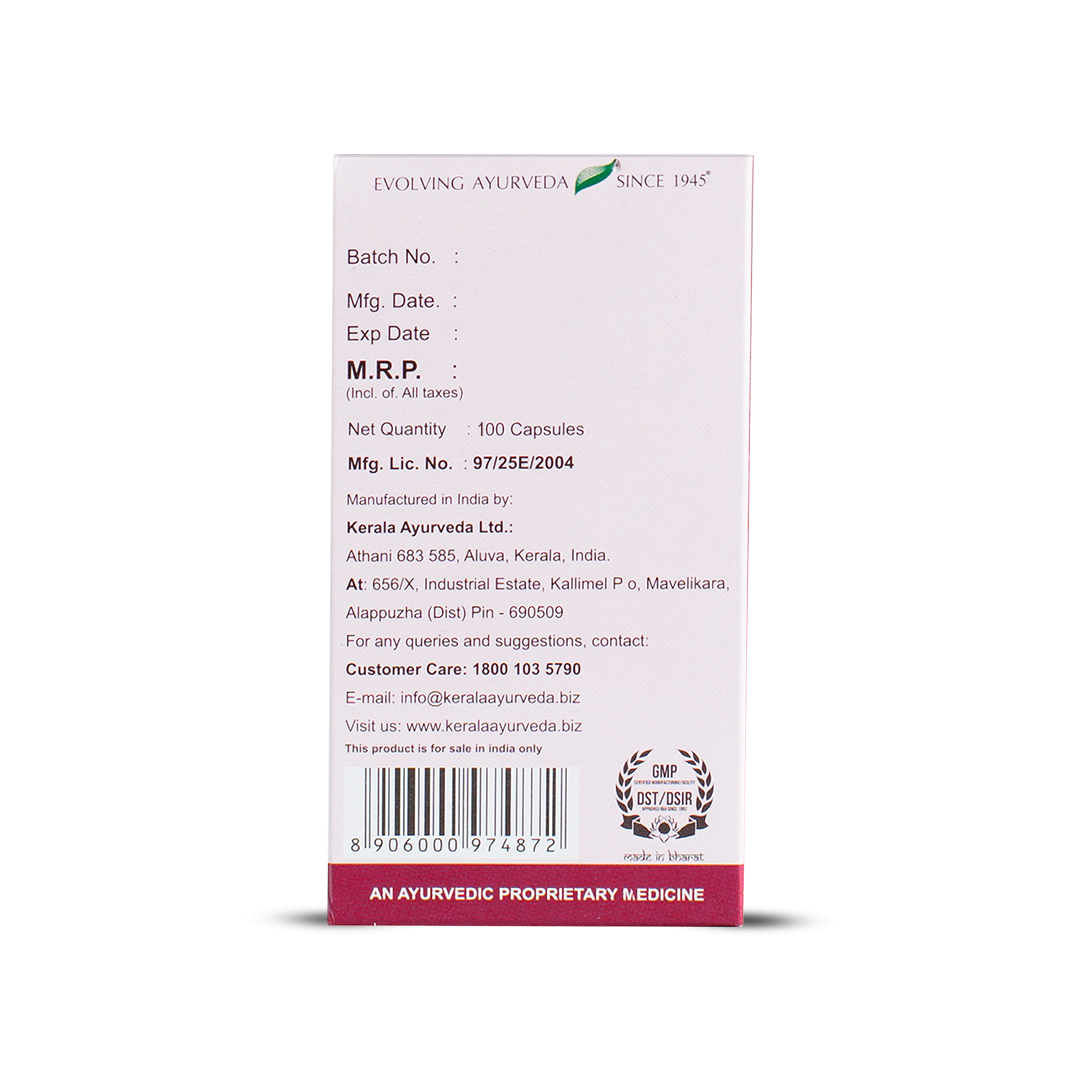 Lumbagest Capsules from Kerala Ayurveda Ltd is an Ayurvedic proprietary formulation to help reduce inflammation and provide quick relief from acute low back aches. Enriched with the goodness of the classical formulas “Simhasyadi Kwath” and “Nirgundi Eranda Prayoga” from Bhaishajyaratnavali, Lumbagest capsules strengthen the lower back and give a hassle-free experience in carrying out daily activities. Consumption of the Lumbagest capsule benefits with the healing of wear and tear of muscle tissues and improving mobility in elderly people. Potentiated with the Ayurvedic technique “Avarthanam,” a process of enriching with activities and reducing the dosage, the back pain Ayurvedic tablets also help manage herniated discs, sciatica, and Kati shula(low back pain).