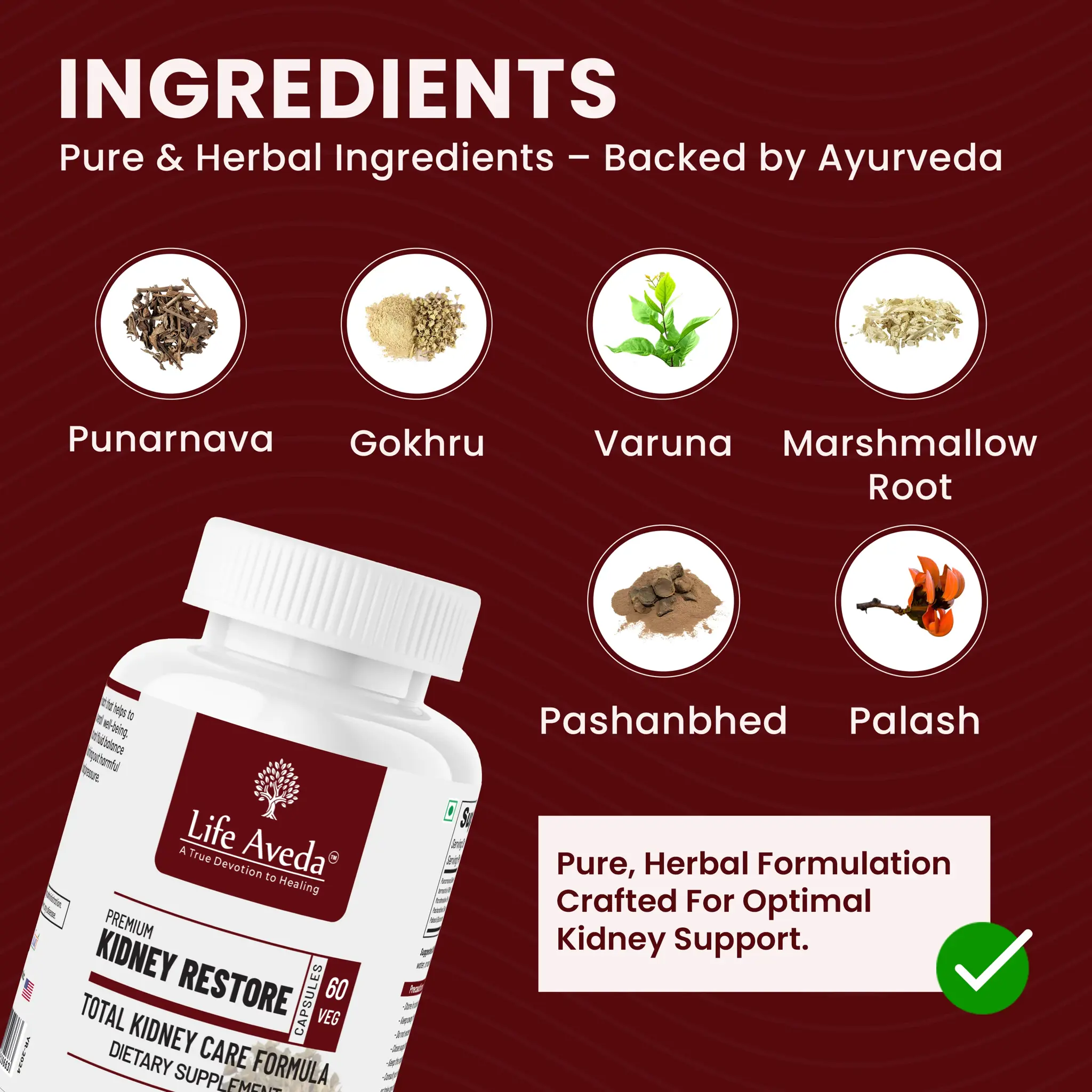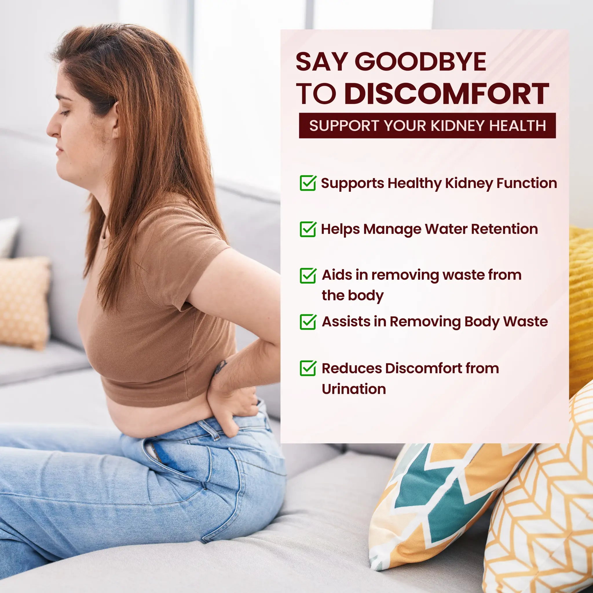Kidney Restore is a natural supplement designed to support kidney health, remove kidney stones and improve overall well-being. It promotes healthy kidney function, helps manage water retention, and assists in dissolution and eliminating kidney stones. By aiding in waste removal and supporting healthy creatinine levels, it helps maintain electrolyte balance in the body. The supplement also helps reduce inflammation and ease pain or burning sensations during urination, bringing comfort to your daily life.