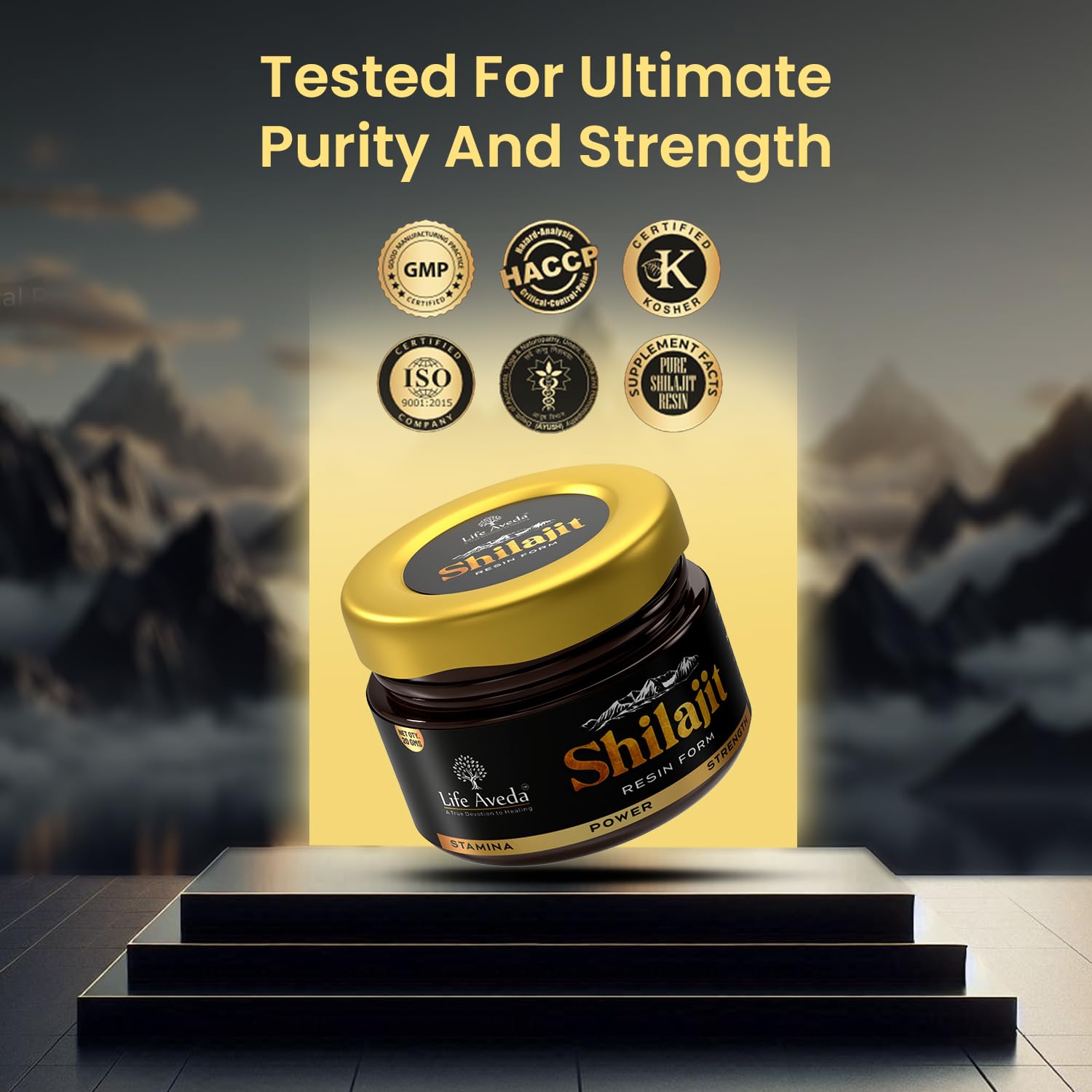 Pure Himalayan Shilajit is collected from the clean Himalayan mountains, 16,000 to 20,000 feet high. This powerful resin is rich in fulvic acid (over 75%) and helps boost strength, energy, and confidence. It supports brain function, keeps minerals in balance, and improves metabolism and muscle growth. Shilajit also promotes overall vitality and provides anti-inflammatory and antioxidant benefits.