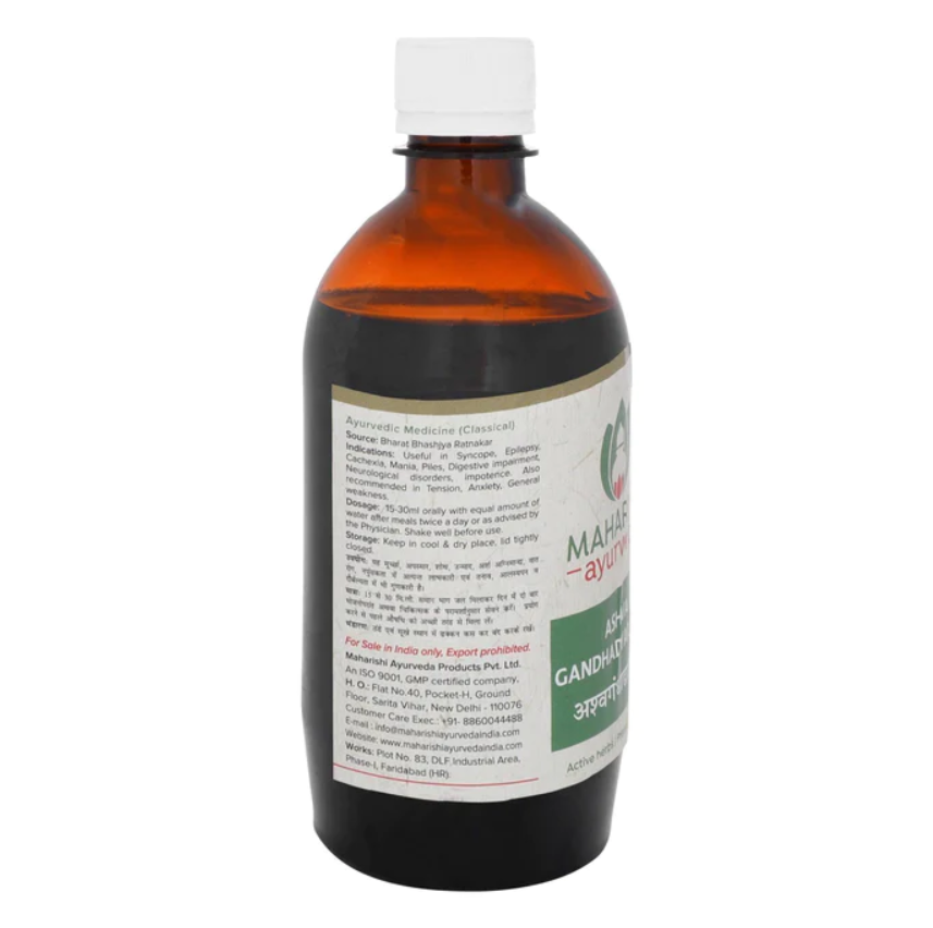 Maharishi Ayurveda Ashwagandharishta is an ayurvedic medicine used in the treatment of sexual disorders, depression etc. According to Ayurveda, Ashwagandharishta has Vata pacifying and Medhya (improves intelligence) properties which can help manage everyday stress and anxiety. It is also known to enhance strength (balya)and has a rejuvenating effect on the body. Ashwagandharishta also aids in pacifying Kapha thereby reducing fatigue in the body. It is beneficial in numerous health conditions.