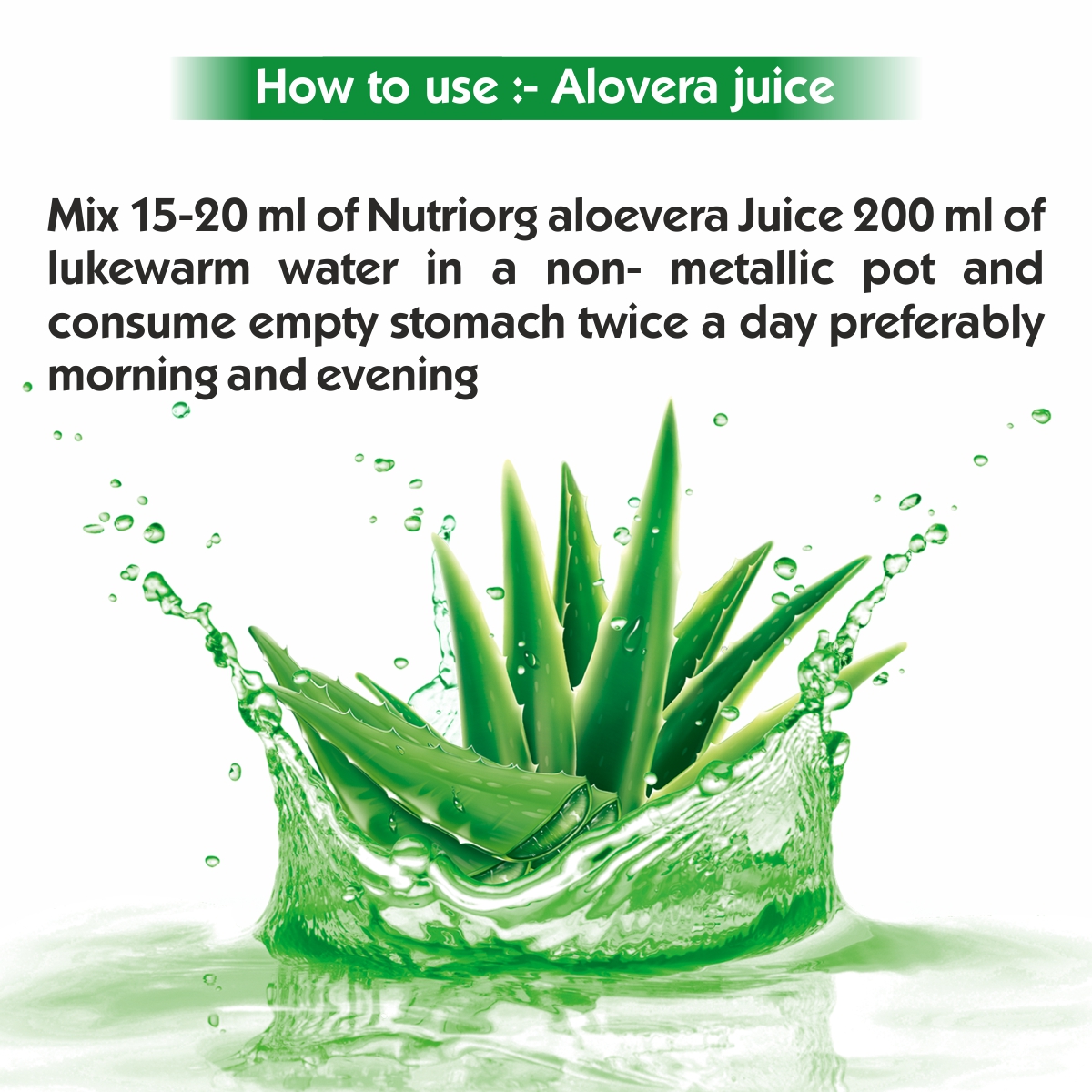 Aloe Vera is a multifaceted medicinal plant. The plethora of values and qualities that an Aloe Vera plant possesses can remotely be compared to any other plant or herb. In the world of Ayurveda it has earned the title of the silent healer and finds numerous mentions in the Ramayana, the Bible and the Vedas. It is known for the regulation of metabolism as it contains various enzymes which help in the digestion of carbohydrates, proteins and fats. Aloe vera is rich in B12 which is usually solely present in animal sources, thus acts as a good source for vegetarians and vegans. It prevents dehydration of the body. The Nutriorg Aloe vera Juice heals wounds and cuts and is beneficial for a healthy skin. The Aloe Vera plant has a history of over 5000 years; people have used it for various medicinal purposes in the past. From Queen of Egypt Cleopatra to Mahatma Gandhi everyone has preached its health benefits. No doctor can overlook the medicinal values that the Aloe Vera plant embodies.• The Nutriorg Aloe vera Juice works wonders for aiding the decline in the glucose levels in the blood.• It helps in metabolism and detoxification.• Aloe vera checks constipation as it works as a laxative• Aloe vera is power packed with nutrients as it is a powerhouse of Vitamins C, E and Beta Carotenes and traces of B12. Minerals like sodium, potassium, magnesium, copper and zincet care also present which are required for the body for building a healthy foundation• It helps elevate constipation, obesity, back pain.•Mix 15-20 ml of Nutriorg Aloevera Juice in 200 ml of lukewarm water in a non-metallic pot and consume empty stomach twice a day preferably morning and evening.Organic Alovera
