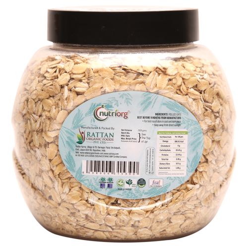 Nutriorg Rolled Oats are loaded with important vitamins, minerals, calcium, potassium, vitamin B6 and vitamin B3. Nutriorg Rolled Oats are gluten-free whole grain and a great source of important vitamins, minerals and fibers. When processed, the whole grains of oats are first steamed to make them soft and pliable, then pressed to flatten them. Nutriorg Gluten Free Rolled Oats can help support weight loss because their high fiber content makes you feel full. Rolled oats are a great way to fill your need for comforting carbs without consuming too many calories.