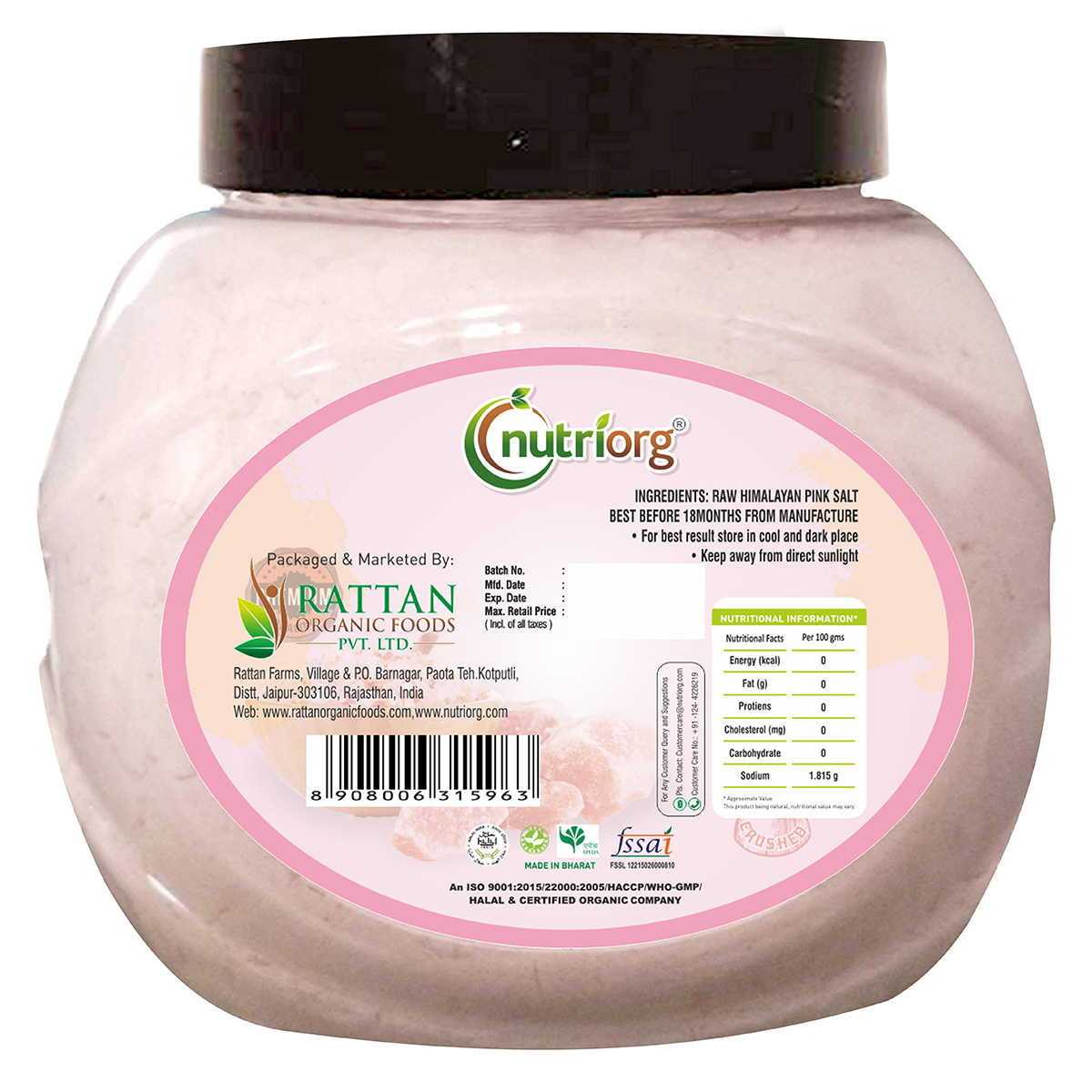 - The Nutriorg Himalayan Rock Salt creates an electrolyte balance and thus increases hydration in the body preventing muscle cramping.