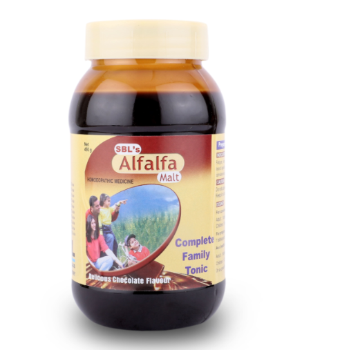 Day-to-day activities can make you tired and exposure to various pollutants can make you sick, making you more susceptible to illness. To boost your immune system and keep your body functioning, take Alfalfa Malt into your routine. Alfalfa is one of the most nutritious plants on earth as it contains essential amino acids, vitamins, and minerals like calcium and magnesium. Alfalfa Malt made from germinated barely is a nutritionally valuable food supplement and a rich source of proteins, carbohydrates, minerals, and vitamins. This makes it particularly useful in fighting off infections, reducing fatigue, and improving vitality. Additionally, Alfalfa supports the health of bones, joints, and the cardiovascular system. Alfalfa Malt is a potent energy stimulant enriched with minerals, amino acids fortified, and potent homoeopathic medicinal herbs well blended in a delicious chocolate-flavored malt base.
