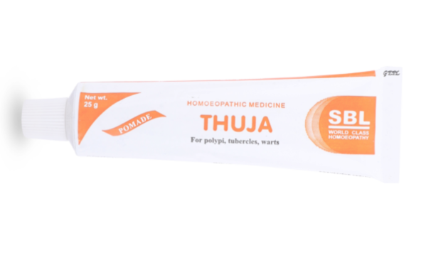 Warts, caused by various human papillomaviruses, are small, painless raised bumps on the skin. Pressure on certain warts that grow in a spot where you put pressure, such as on a finger or on the bottom of the foot, can be painful. A wart is a skin growth. These skin growths have tiny blood vessels supplying them. SBL Thuja Ointment helps in providing gentle relief from the warts.