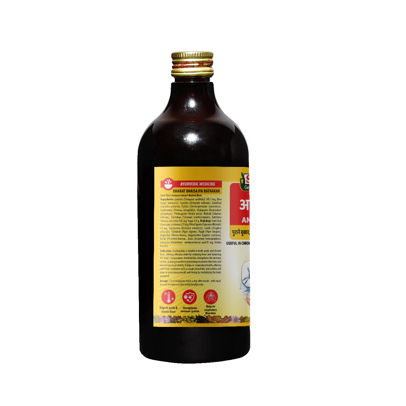 Amritarishta is an Ayurvedic liquid formulation made from fermented herbs. It helps strengthen the body's immune system, aiding in the fight against harmful germs. Additionally, it can help to reduce fever duration, enhance immunity & restore strength. It may also improve appetite and help with rheumatoid arthritis.