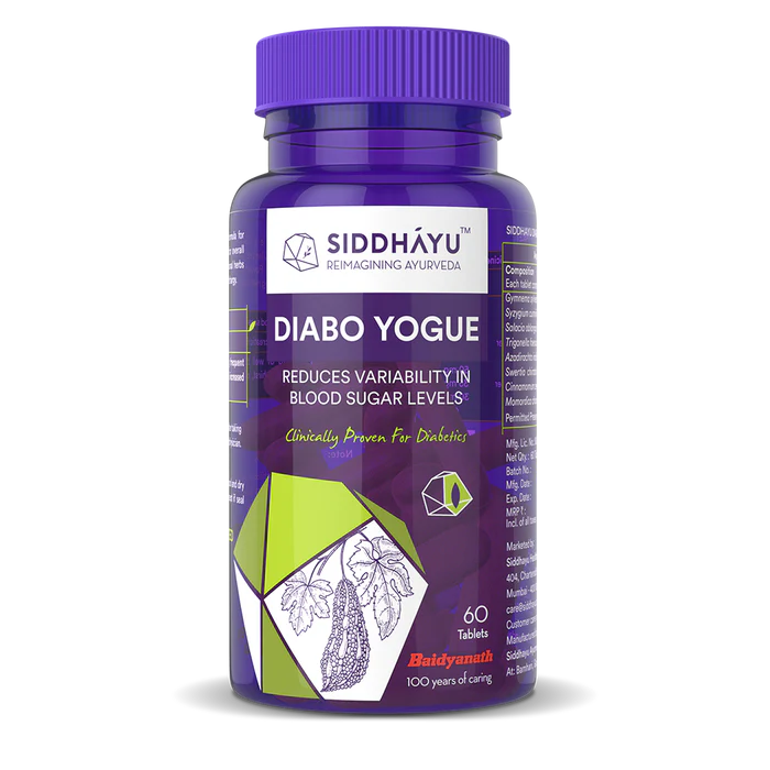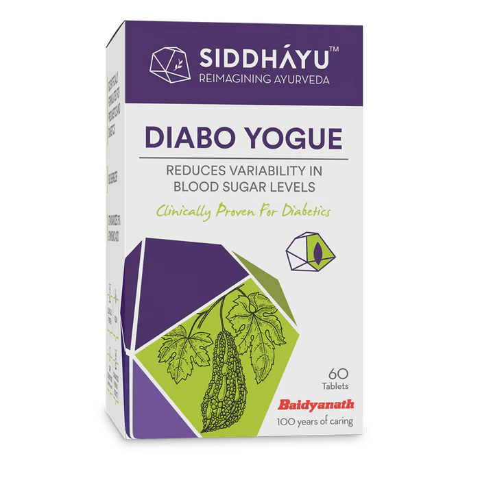 DiaboYogue Tablet is a completely natural, clinically-proven, complementary formula for diabetics and prediabetics to help regularize blood sugar levels. The combination of Jamun, Bitter Gourd, Methi, and Gudmar helps in the management of diabetes-associated symptoms and prevents damage of vital organs like kidney, liver, eyes, and muscles. Besides, it improves metabolism, increases stamina, and beats lethargy and does not interfere with other anti-diabetic medicines.