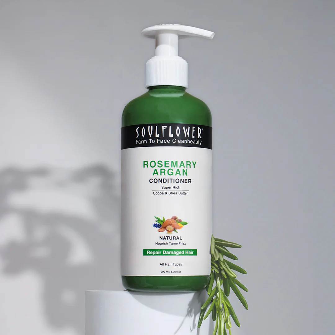 Frizzy and rough hair is more prone to breakage, which can lead to hair loss. This Rosemary Argan Conditioner is your solution! Packed with Argan oil, it provides multi-layer protection, strengthening your hair and defending it against damage. The hair conditioner revitalises dull, lifeless locks and restores elasticity by infusing them with essential moisture and nutrients. It also smooths the hair cuticle, leaving hair feeling soft, silky & shiny. This super creamy conditioner is your new BFF! Its natural ingredients nourish thinning hair and keep it hydrated, all without weighing your hair down. Rosemary, a natural alternative to minoxidil, strengthens roots, reduces hair fall, and invigorates your scalp for healthier growth. Tamanu seed oil boosts hair density, prevents split ends, and reveals your hair's natural shine. Lavender reduces receding hairlines, conditions follicles, and improves texture for smoother, less frizzy locks. Avocado, the highest source of natural biotin, strengthens hair fibres & improves hair texture.