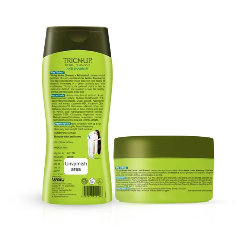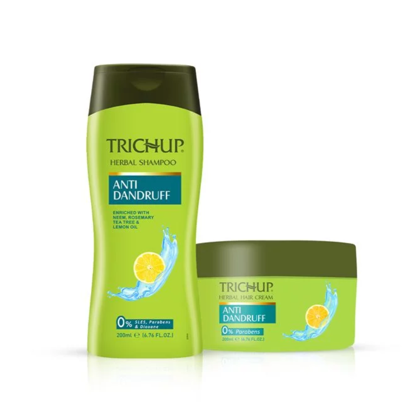 Trichup Herbal Hair Cream Anti Dandruff contains the natural goodness of exotic oils like Neem, Rosemary, Lemon & Tea Tree which together protect scalp skin from causes of dandruff. Tea Tree, one of the key ingredient is a known anti-fungal agent which effectively treats dandruff. Neem, well known for its anti-fungal and anti-bacterial properties fights dandruff, soothes the itchy and flaky scalp. Rosemary oil has rich anti-oxidant & anti-inflammatory properties. It improves blood circulation in the scalp and stimulating hair growth. It is used to prevent premature greying and dandruff. The non-greasy formula of Trichup Herbal Hair Cream – Anti Dandruff is ideal for everyday use to keep hair healthy, lustrous, and shiny all day long.