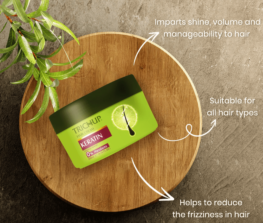 Trichup Keratin Hair Cream is fortified with Keratin protein, which forms a layer over the hair replacing the lost Keratin and adds strength plus shine along with taming the frizz. It also contains suitable conditioners to make your hair sleek, lustrous, and manageable.