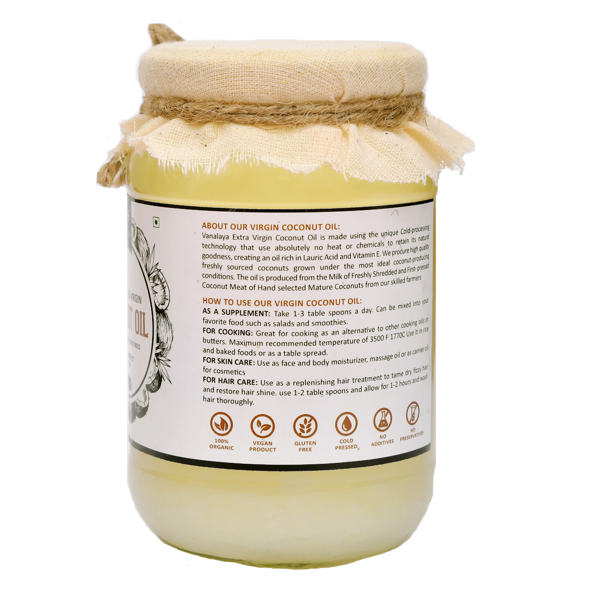 Vanalaya Virgin Coconut Oil is a superfood where fresh coconuts are cold-pressed right after harvesting. The fresh coconut inside each nut yields a pure, smooth oil that is never deodorized, bleached, or refined. With loads of vitamin E. This pure coconut oil is an excellent source of healthy fat burning medium chain fatty acids for weight loss. Apply our coconut oil to roots and ends of hair for a conditioning hair treatment. Use weekly for radiant looking hair. This coconut oil for hair & skin can be used for a deep conditioning hair treatment or natural skin moisturizer. Our Organic Coconut Oil is naturally rich in Medium Chain Triglycerides (MCTs) supplying natural energy to your body. Use it by the spoonful to add creamy richness to smoothies, salad dressings, or keto-friendly coffee.