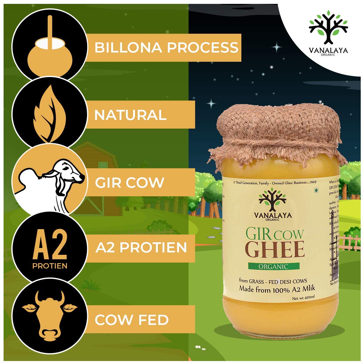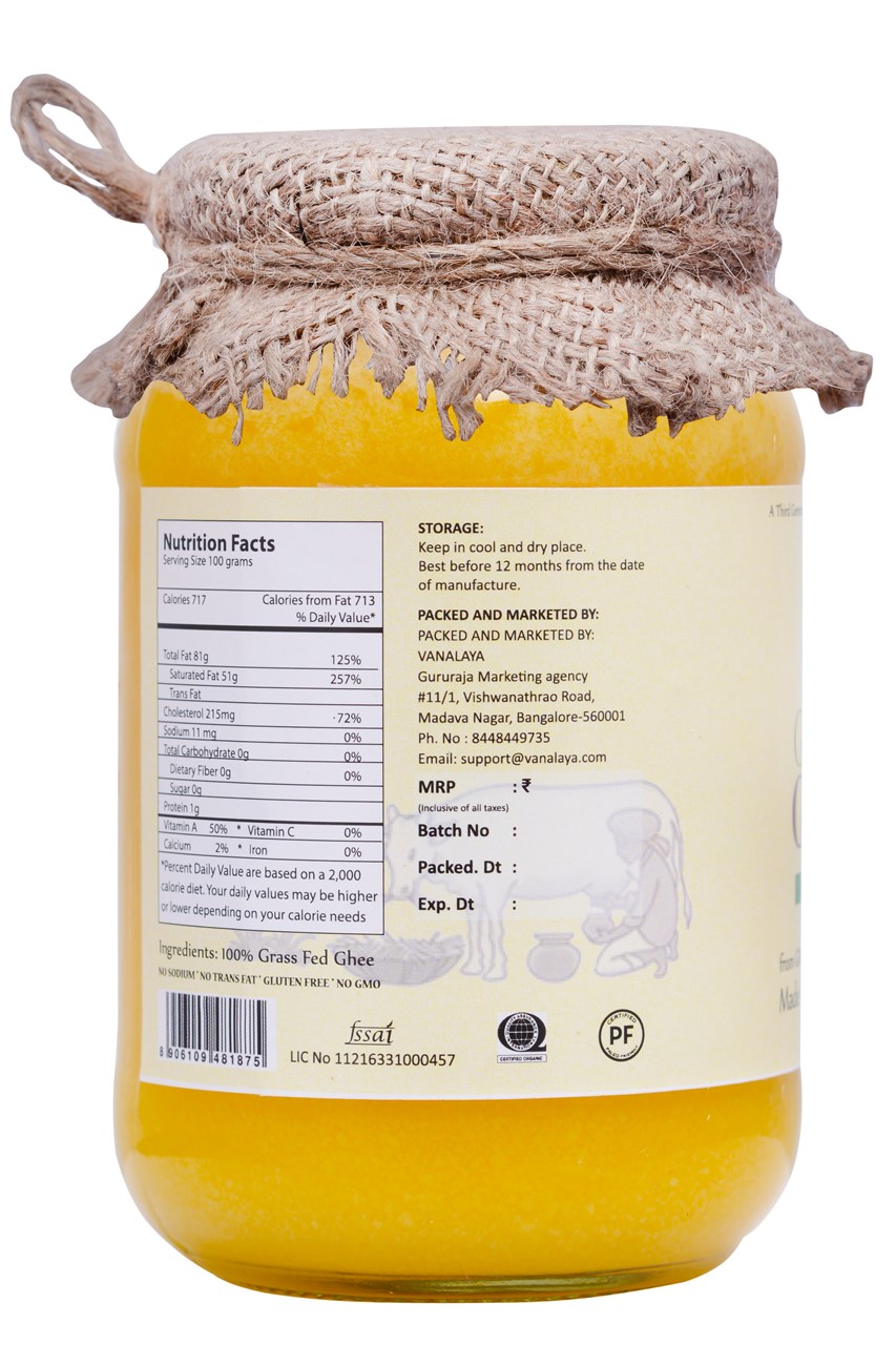 Vanalaya gir cow ghee is nutritious, healthy, pure and unadulterated ghee with a2 proteins made from a2 milk of Indian native cows. Unlike other ghee product...