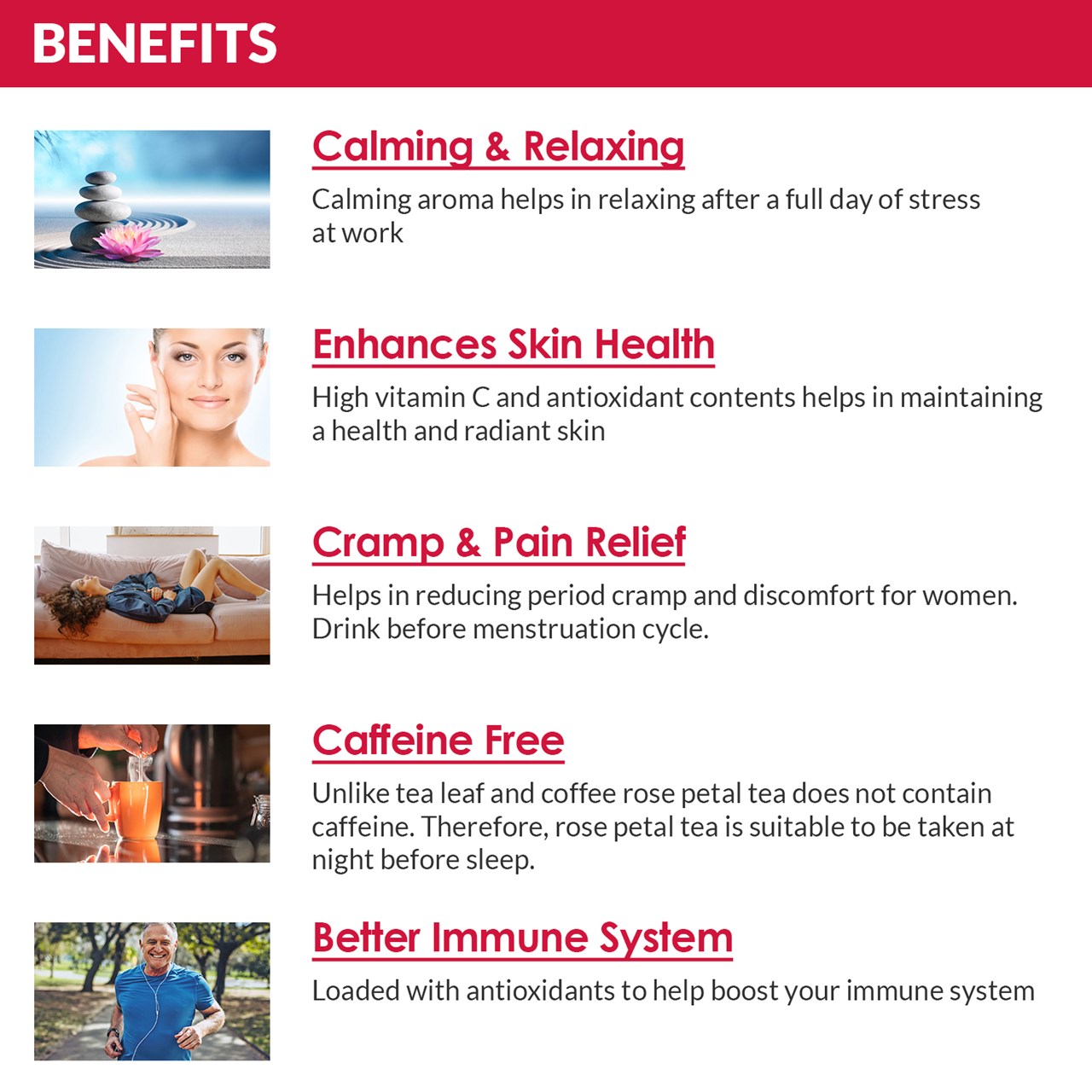 Vanalaya Rose Tea is an aromatic herbal beverage made from the fragrant rose petals. It’s naturally caffeine-free, a good source of hydration, rich in antioxidants, and may help relieve menstrual pain. Rose petals are a good source of Vitamin C, Iron, Calcium, Vitamin A and Vitamin E. Rose tea also burns down body fat and makes you lose weight faster. Rose Petal tea tastes heavenly. The queen of flowers delicately plays with your taste buds and leaves you with a smooth palate giving a subtle floral flavour. Our rose tea is made from real rose petals, which are picked when they are young and then dried. It has a natural rose flavour and aroma, making it a lovely and highly enjoyable drink. It provides a slightly sweet aroma and reddish colour. This tea will be more popular if mixed with other teas. Our rose tea is 100% pure, Natural product without having any artificial or synthetic ingredients. Made from the premium hand picked rose flowers. The pleasant, sweet-scented and ambrosial aroma of rose petals will engulf the atmosphere in its fragrance. When brewed, Rose Petal tea is light golden in colour. The naturally uplifting quality of this tea helps to enhance mood. It's good for those who are feeling down, stressed. The effect that this type of tea can have on hormone levels is well known, this tea can help to relax your mind and keep you calm.