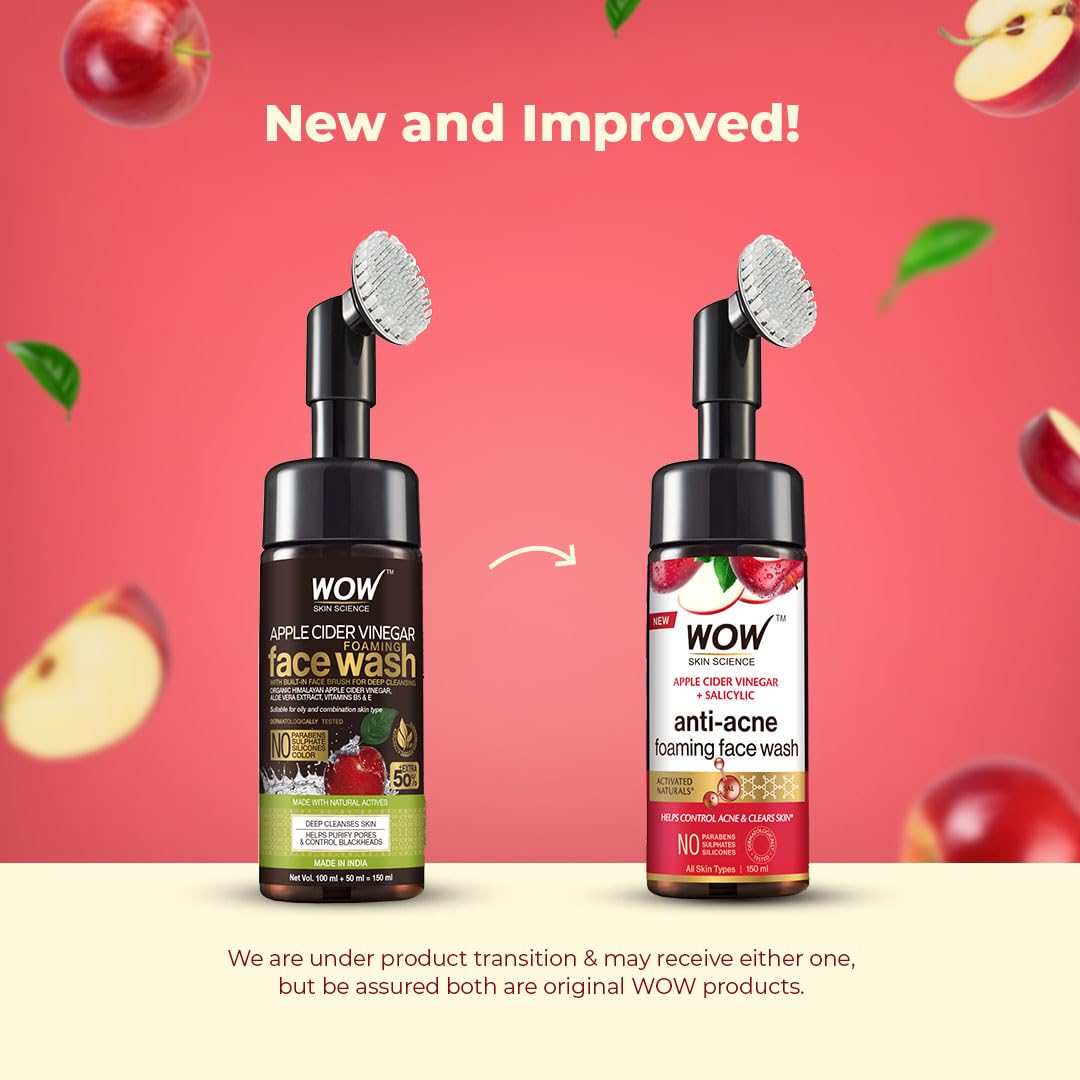 Reveal your skin's true potential with WOW Skin Science Apple Cider Vinegar Foaming Face Wash. Experience a complexion that's not just clean but visibly healthier, brighter, and more supple with every wash.
