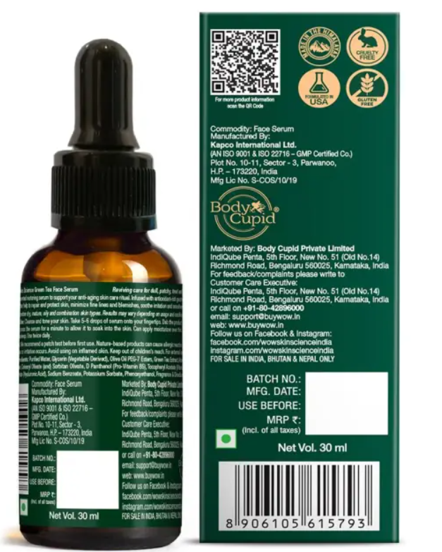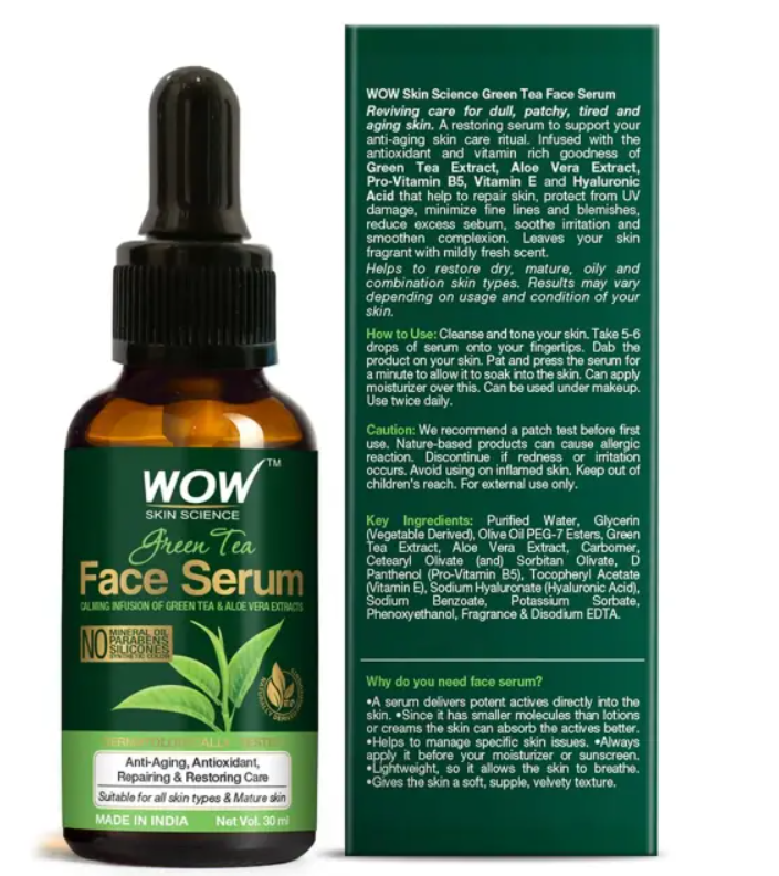 When your skin looks tired and dull and fine lines are visible, it is time to bring it back to life with a shot of our green tea face serum, which is formulated to restore your lackluster, aging, and blemished skin. It is infused with the antioxidant and vitamin-rich goodness of green tea extract, aloe vera extract, pro-vitamin B5, vitamin E, and hyaluronic acid. It has a high concentration of natural actives and is pH-balanced. It is a lightweight and moisturizing serum to support your anti-aging skin care ritual. Use our green tea face serum twice a day after cleansing your face to get supple, soft, and fresh-looking skin. You need to be regular in using it to see the difference. It is suitable for all skin types. It contains no silicones, mineral oil, or parabens and is made in the beautiful valley of the Himalayas.