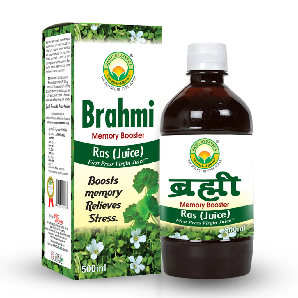 Basic Ayurveda Brahmi Ras (Juice) Memory Booster Herbals Brahmi Juice Antioxidant Memory Enhancer | Natural Ayurvedic BrainTonic And Health | Basic Ayurveda's Brahmi Ras (Juice) is the best herbal supplement to increase memory naturally without causing any side effects. This is one of the best herbal remedies to enhance brain function, learning capability, and retention. It nourishes the neurons, it improves retention ability. It increases grasping power, learning capability. It contains alkaloids like Bacoposides which are the reason for the action of Brahmi to increase memory. Brahmi is one of the famous gifts of Ayurveda to the world.