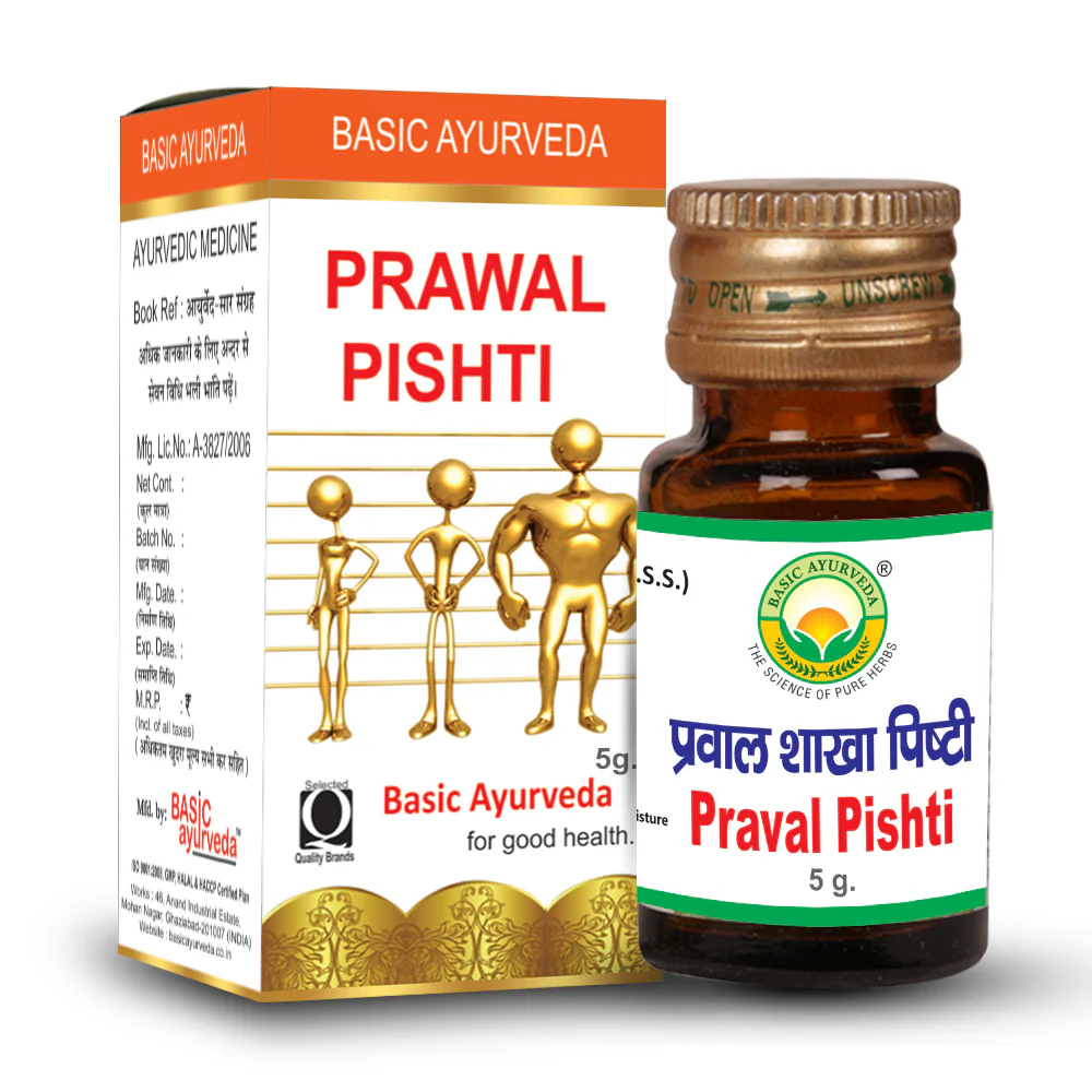 Basic Ayurveda Prawal pishti or coral calcium is useful in diseases in which people experience heat or burning sensation in any part of the body or in the whole body. It reduces heat in the body and lowers the elevated body temperature in fever. In fever, it works in similar ways as Acetaminophen works. It reduces fever by acting on the temperature center in the brain and producing coolness in the body. Its intrinsic nature is cold, which means it brings coolness to the body after eating it.