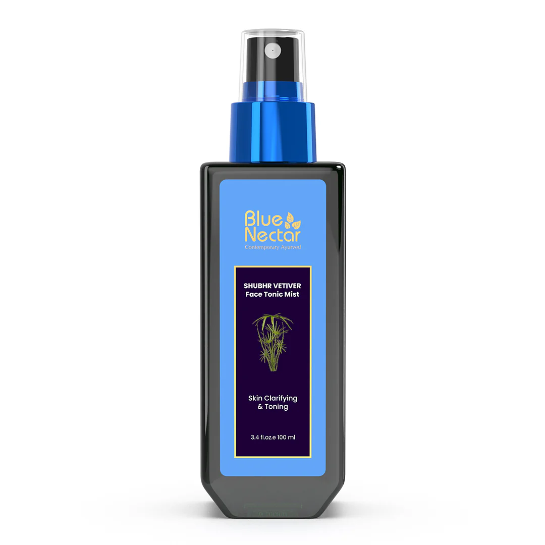 Blue Nectar Vetiver Water Face Mist is made by steam distilling Vetiver grass roots. It is pure and doesn't contain any chemicals, stabilisers, or fragrances. People have known for hundreds of years that Vetiver (Khus) can cool and calm them down and also soothe their skin. With just a spritz, this mist quickly hydrates, heals, and soothes your skin, and its earthy petrichor scent calms your senses.