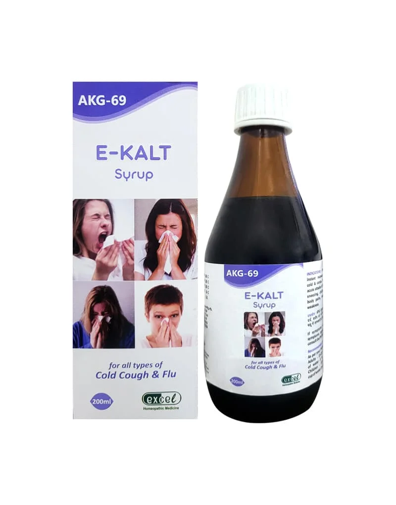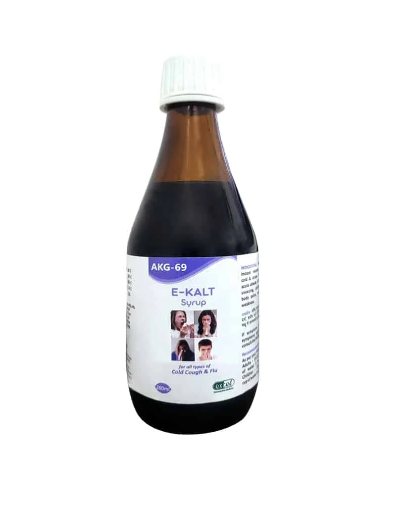 E-Kalt Syrup may be helpful in recovery from cold & flu symptoms, headache, body pain, malaise & general weakness. It’s a companion for the changing seasons and helps tackle most problems associated with cold and flu problems, including conditions like coryza, nasal discharge, and malaise.