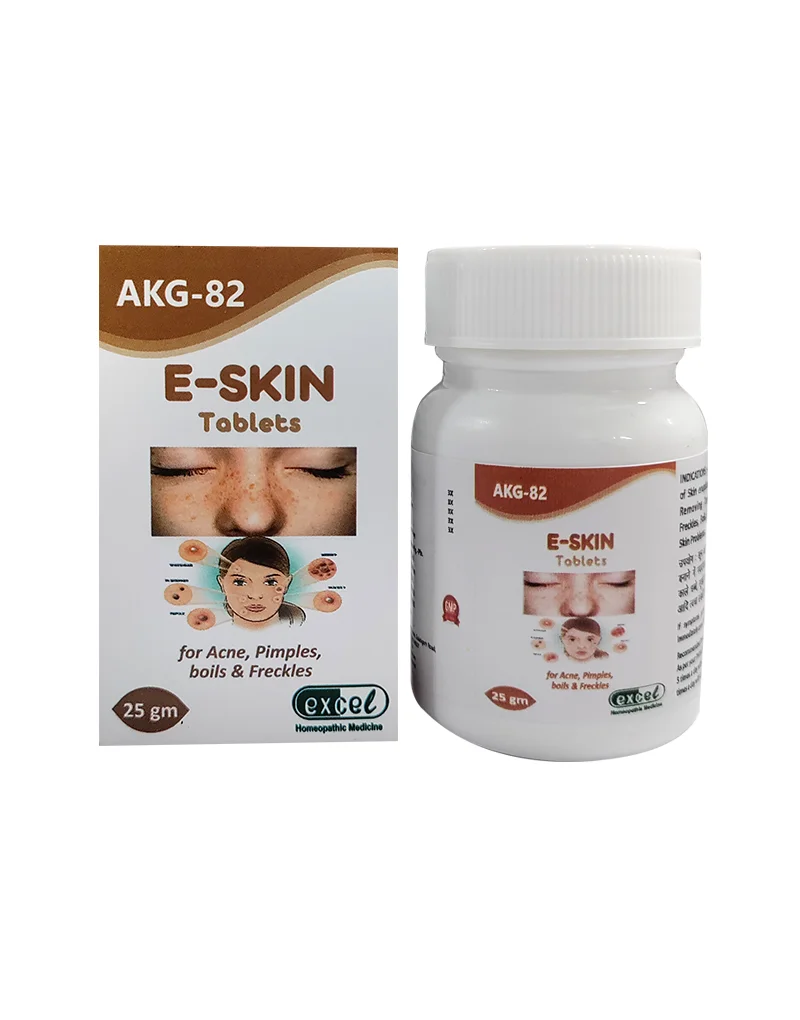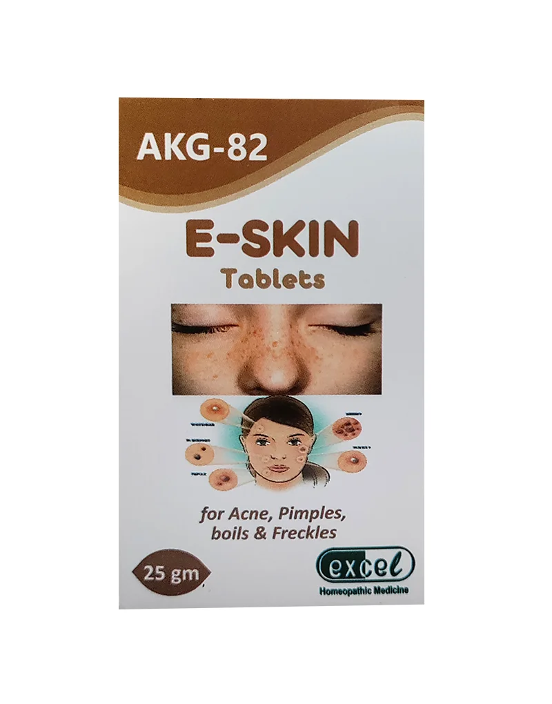 E-Skin Tablets may be an excellent Homeopathic medicine, addressing a wide array of skin issues, from acne and pimples to scars, eczema, and more. These tablets work diligently to eliminate black spots and boils, promoting a clearer complexion. E-Skin Tablets also effectively relieve conditions like urticarial rashes, psoriasis, and allergic reactions. Beyond skin troubles, they contribute to detoxifying the body, ensuring a healthy, radiant complexion by eliminating harmful toxins.
