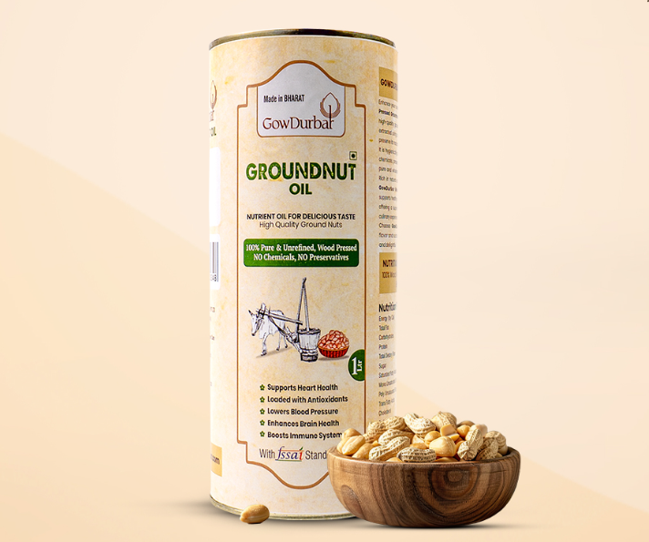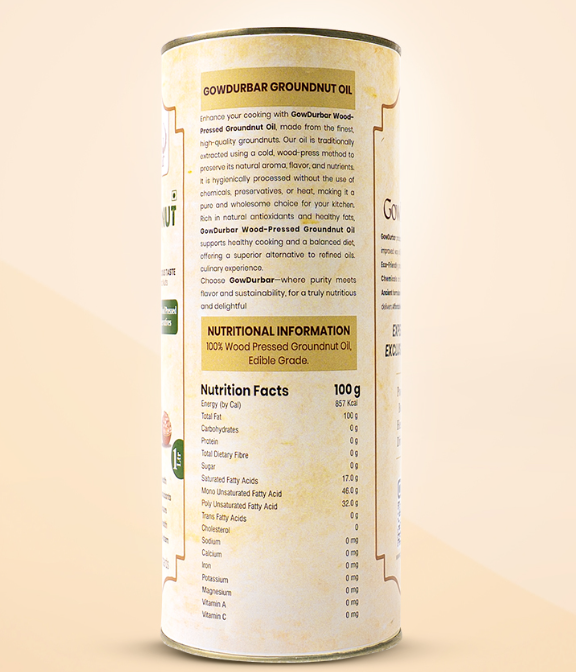 GowDurbar Wood Pressed Groundnut Oil brings the pure goodness of organic groundnuts straight to your kitchen. Carefully crafted using traditional filtration methods, this 100% unrefined oil is free from chemicals and preservatives, ensuring unmatched purity. More than just a flavorful addition, this nutrient-rich oil is packed with proteins, essential nutrients, and healthy fats. Enjoy the wholesome richness of GowDurbar Groundnut Oil as it not only elevates the taste of your dishes but also supports overall well-being. Renowned for its heart-friendly benefits, it helps regulate blood pressure, promotes cognitive health, and strengthens immunity. Make every meal a perfect blend of health and taste with GowDurbar Groundnut Oil.