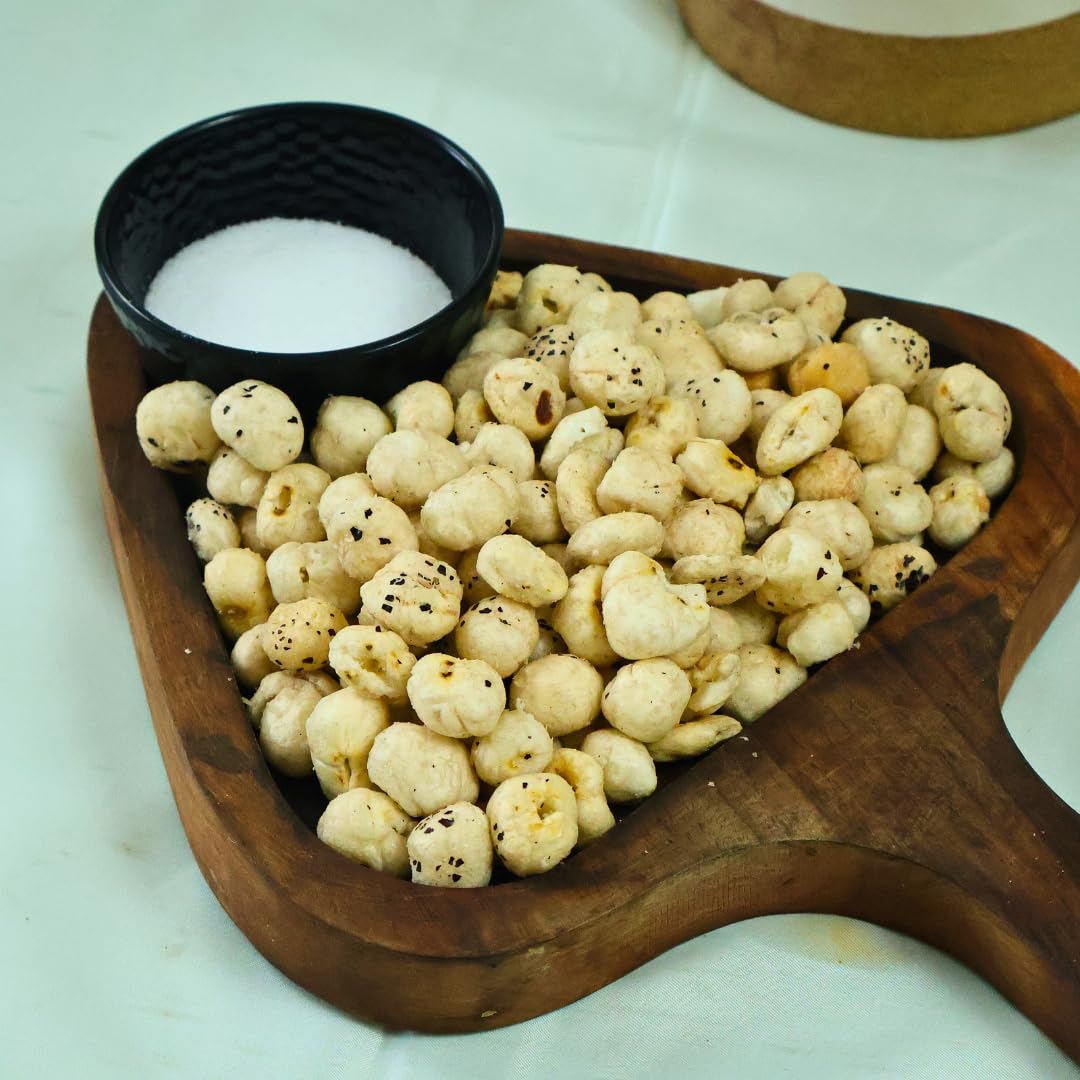 Makhana/ Fox Nut / Lotus Seeds are nutritional foods that are enriched with nature’s goodness that ensure adequate nutrient intake. These Fox Nuts are Gluten Free, Keto Friendly, Diabetic Friendly with a hint of salt, is your best snack partner. Experience the delicious taste of makhana. It's a light, flavour-dense snack that adds great crunch and texture to any time of day. Properly harvested, makhana is completely free of pollutants. It is naturally sweet, with low glycemic index and caloric values, making it ideal in a variety of recipes as a substitute for nuts or as a topping on desserts. This wholesome and healthy snack contains magnesium, iron, phosphorus, carbohydrates, protein, potassium, fiber, and zinc. There are many health benefits of eating makhana that kept this delicacy being a part of the traditional diet. This tiny, mild-tasting nut (or seed) has a strange resemblance to the brain of the human. High in heart-healthy Omega-3s, this makes a great addition to your plate or your supplements.