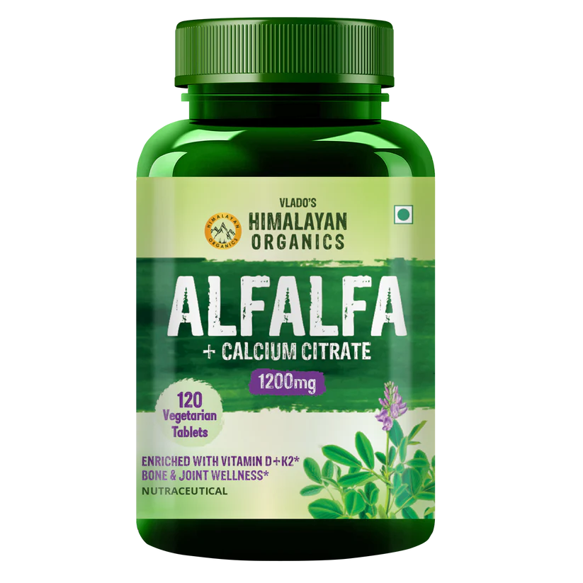 Vlado's Himalayan Organics Alfalfa with Calcium Citrate Malate with Vitamin D+K2 helps manage calcium levels in the body and aids in superior bone health and joint support. This combination of alfalfa calcium is used to fulfill blood calcium levels in people who do not get enough calcium from their diets. It may be used to help conditions caused by low calcium levels such as bone loss (osteoporosis), weak bones (osteomalacia/rickets), etc.