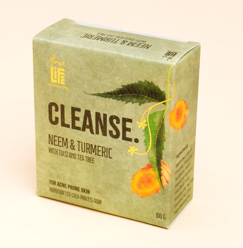 Isha Life’s Neem & Turmeric Soap is a blend of nature's own dynamic duo - known traditionally for their high vibrancy. Infused with Neem and Turmeric, this handcrafted cold-process soap offers a deep, revitalizing cleanse, keeping acne-prone skin clear and vibrant. Enriched with the goodness of Tulsi and Tea Tree essential oils, every rub carries the antibacterial and anti-inflammatory properties of these nourishing herbs, leaving your skin refreshed and radiant. Made with saponified oils of coconut, olive, and sunflower, it cleanses without stripping away your skin’s natural moisture. Free from sulphates, parabens, and synthetic fragrances, this is more than a soap-it is a reminder that cleansing the body is also a step toward inner clarity and well-being.