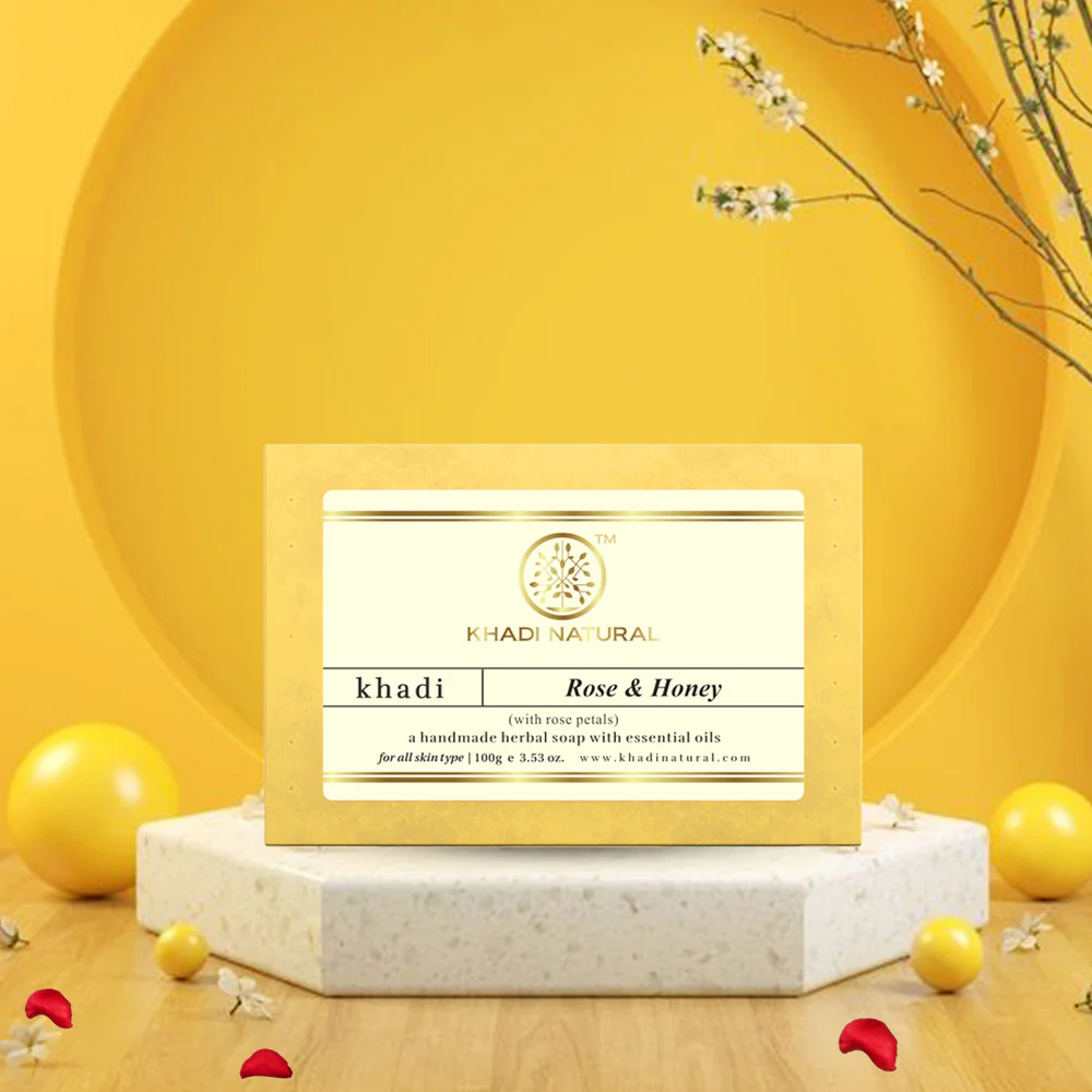 Khadi Natural Rose & Honey Soap has wonderful mind and soul-calming properties that uplifts your senses and relieves you from stress and insomnia. This nourishing soap has rose petals that make your skin soft and supple. Free from harsh chemicals, this soap suits all skin types.