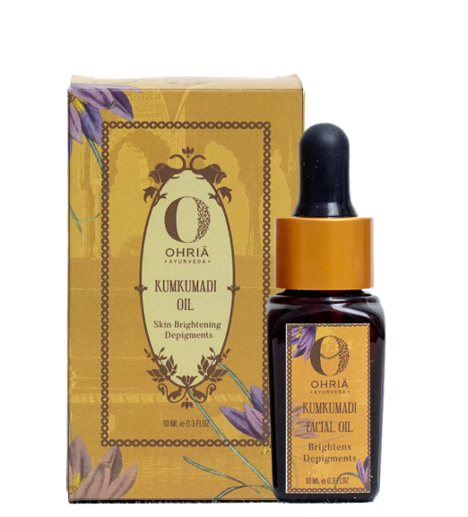 Apply 3-4 drops of Kumkumadi Skin Brightening Elixir to your face using your fingertips.